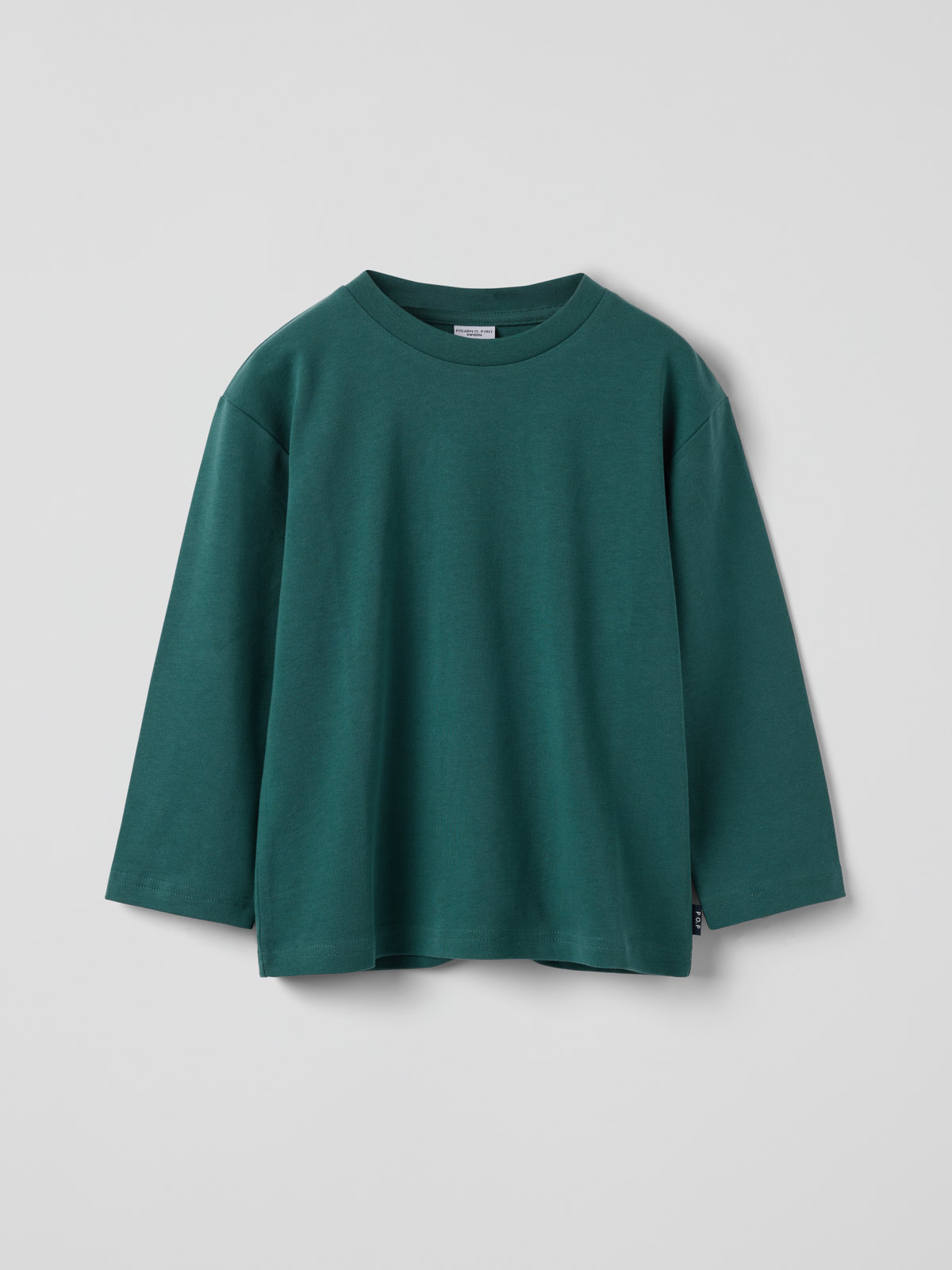 Long-sleeved T-shirt in soft jersey made from 100% organic cotton – a favourite made to be loved for a long time! The shirt is solid-coloured and features a ribbed neckline.
