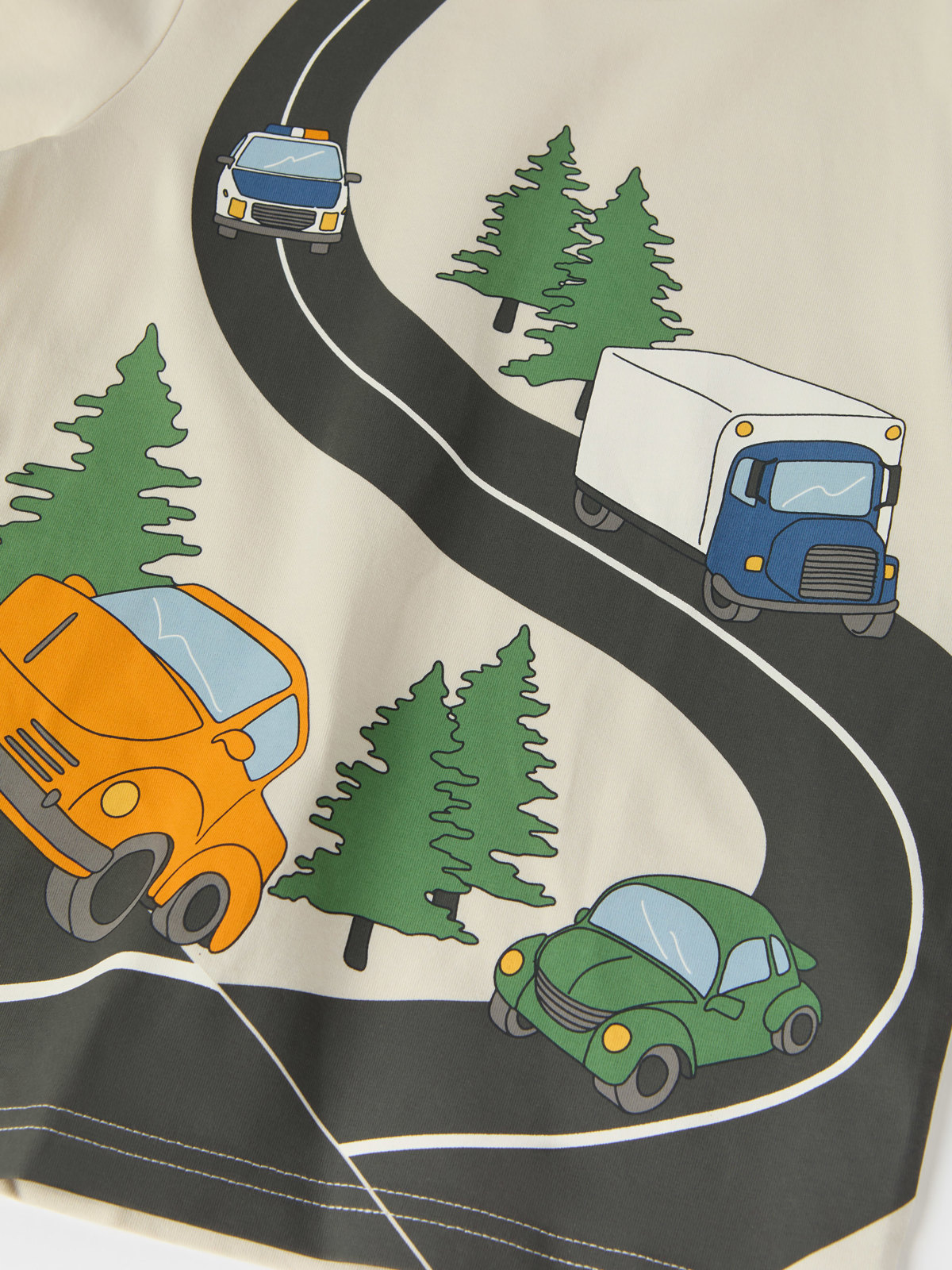 Lightweight and comfy top in soft, organic cotton jersey – a long-lasting favorite! The top features a large roadway print on the front.