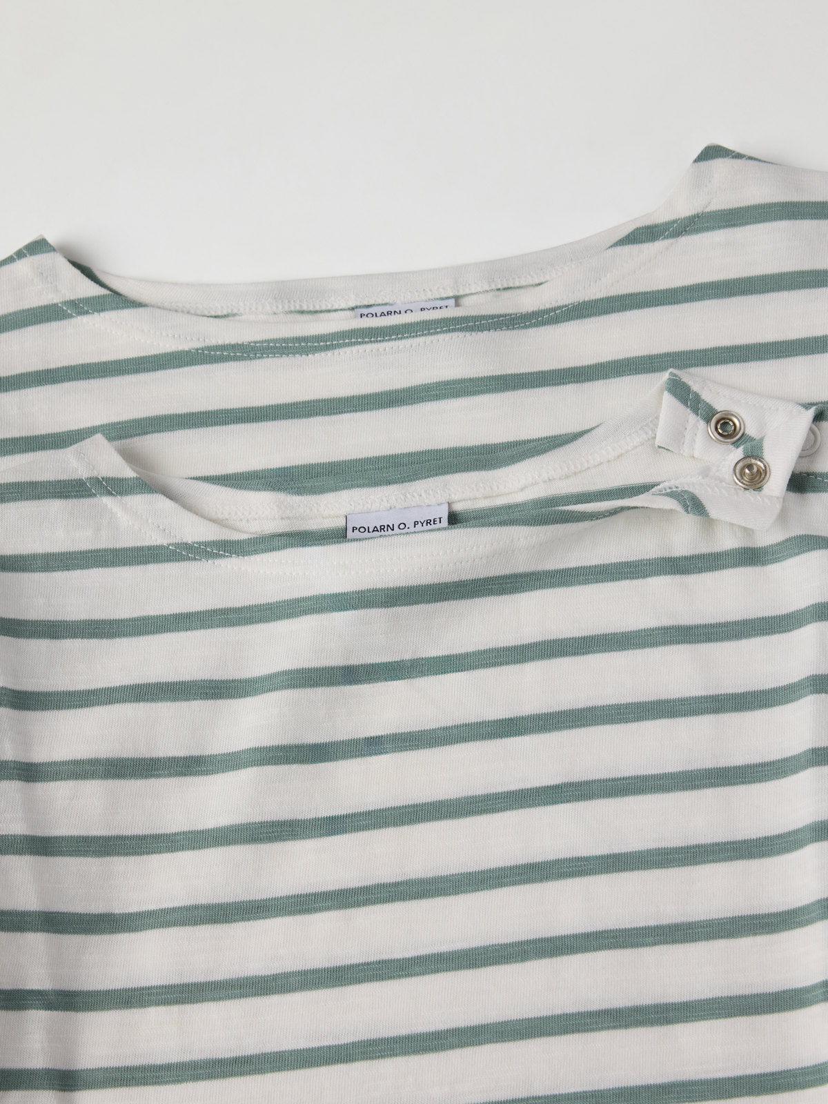 Striped top in thin, 100% organic cotton. The top is perfect for summer outings, as it protects against strong sunlight and is cool and comfy. Size 86–92 has snaps on one shoulder to facilitate dressing.