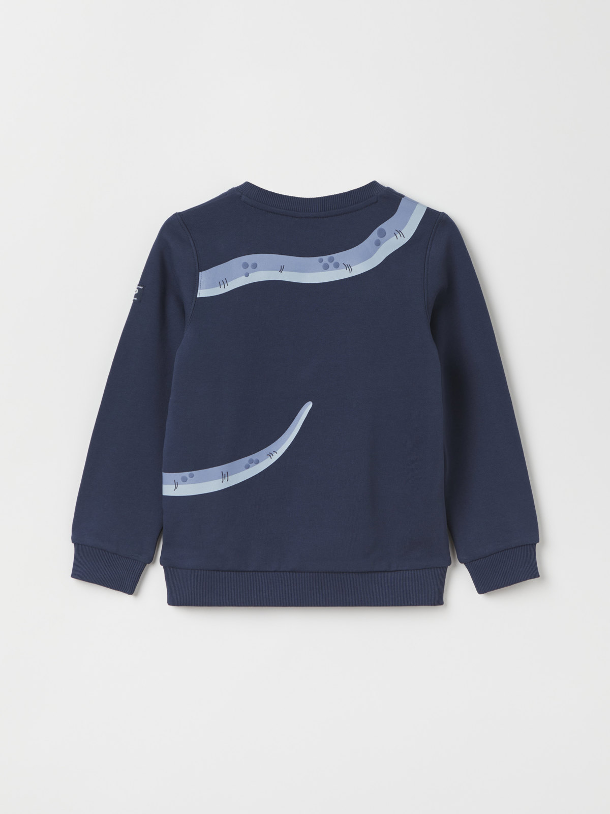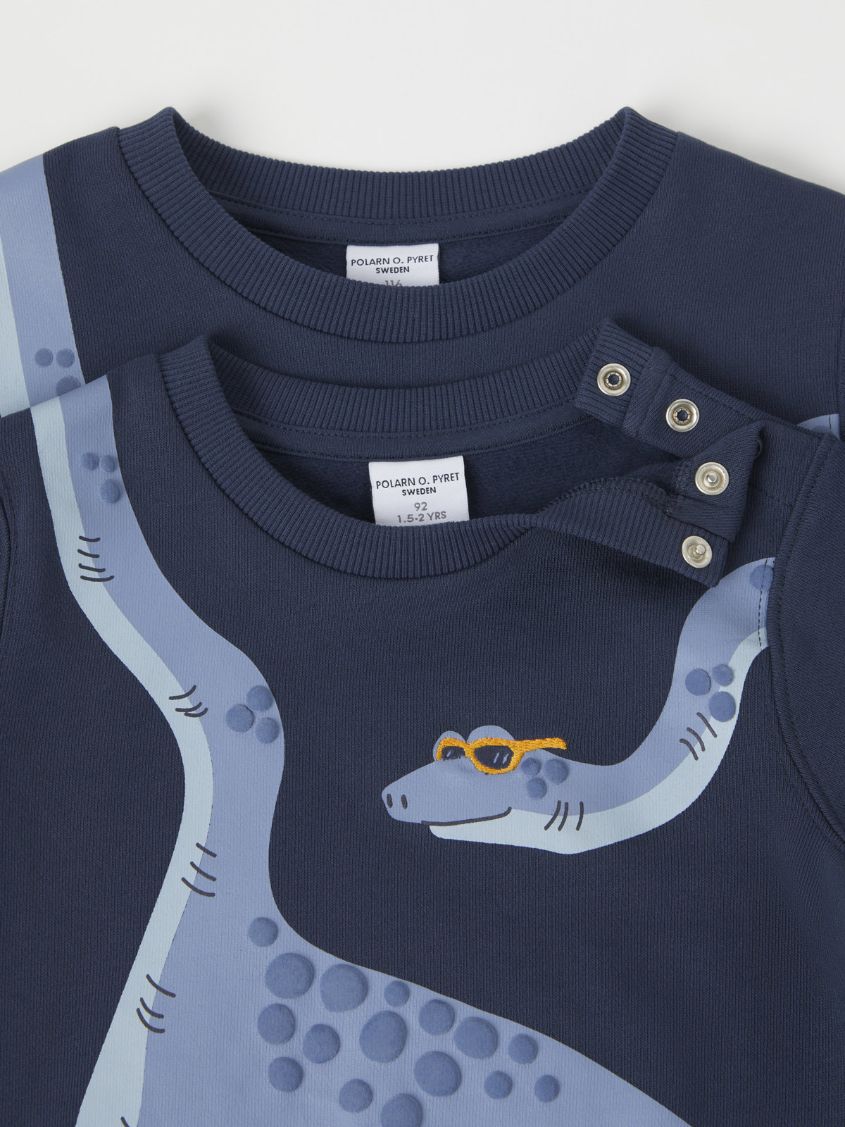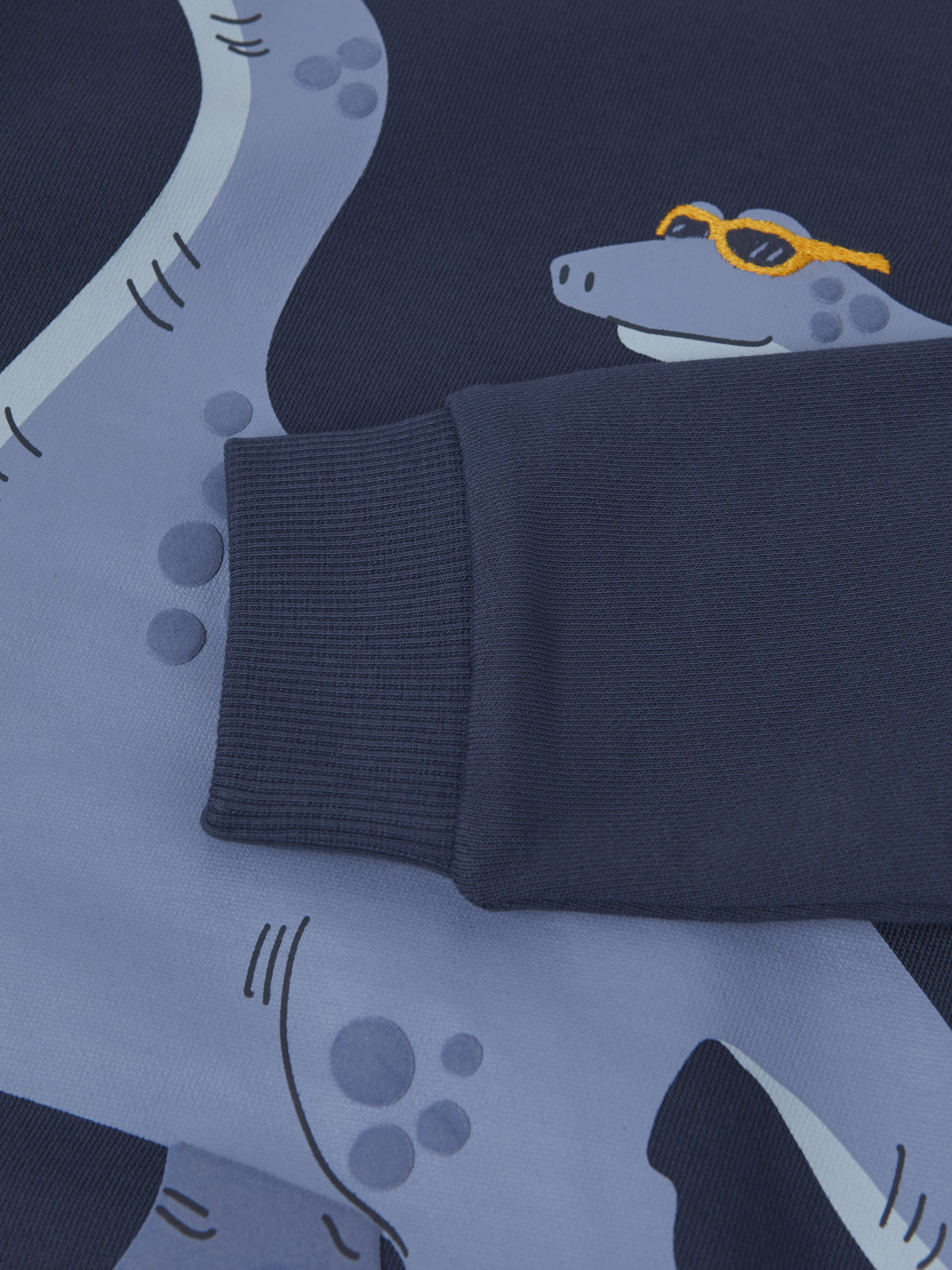 Soft and comfy sweatshirt in 100% organic cotton with a large dinosaur print on the front that continues to the back.
