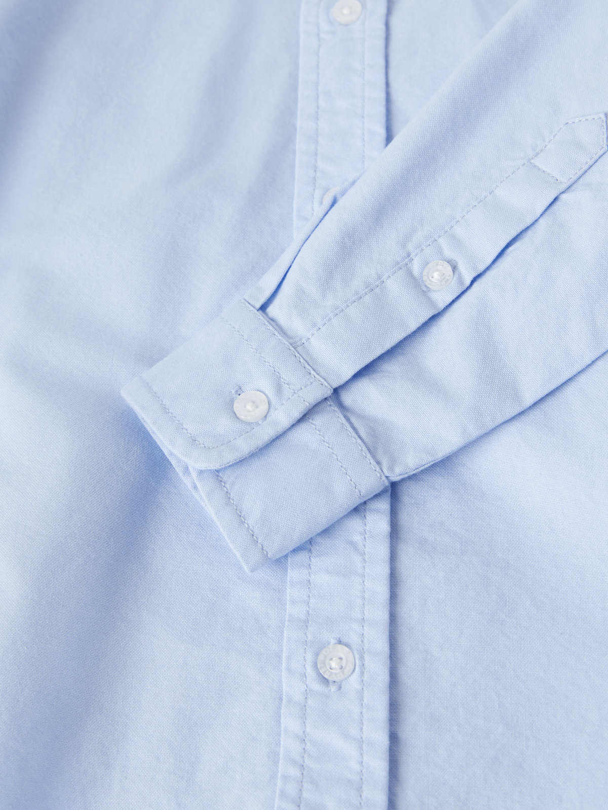 Woven Oxford shirt with button-down collar. The shirt is made of 100% organic cotton and has an yoke cut with back pleats.
