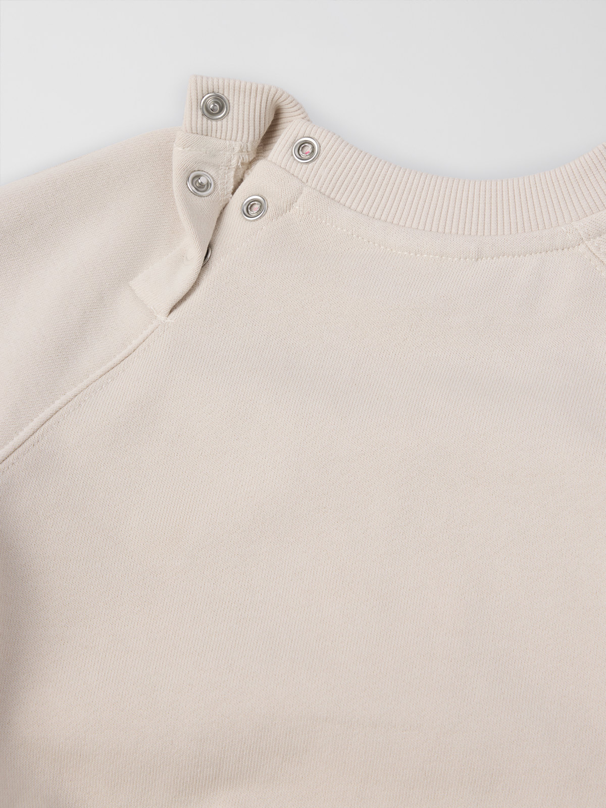 Jumper in 100% organic cotton with a soft sweatshirt quality. The perfect garment for any occasion! It has a ribbed neckline and cuffs.