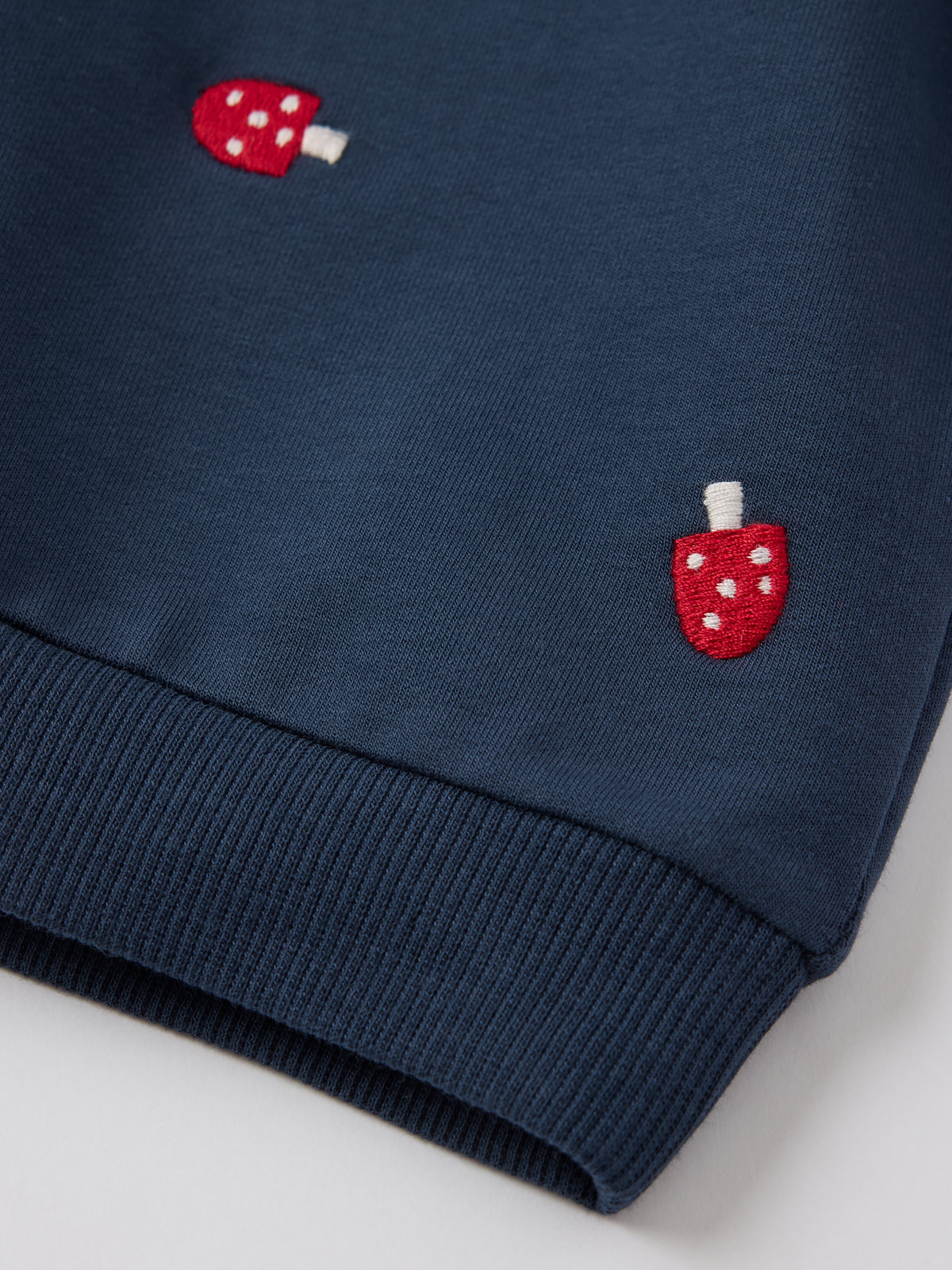 Jumper in 100% organic cotton with a soft sweatshirt quality for your little one. Perfect for any occasion! It has a ribbed neckline and cuffs with snaps on the shoulder to facilitate dressing.
