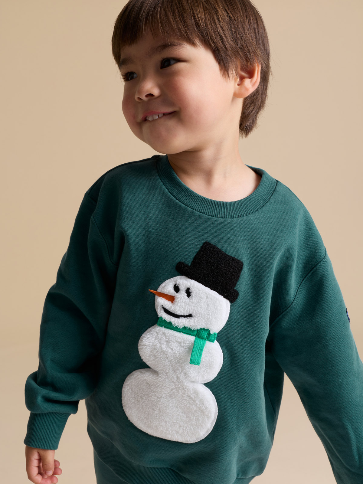Soft sweatshirt made from 100% organic cotton. This jumper features a large snowman embroidery on the front and soft ribbed trims at the neckline, cuffs and hem for a comfortable fit.