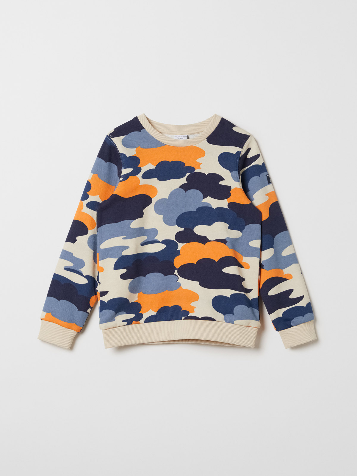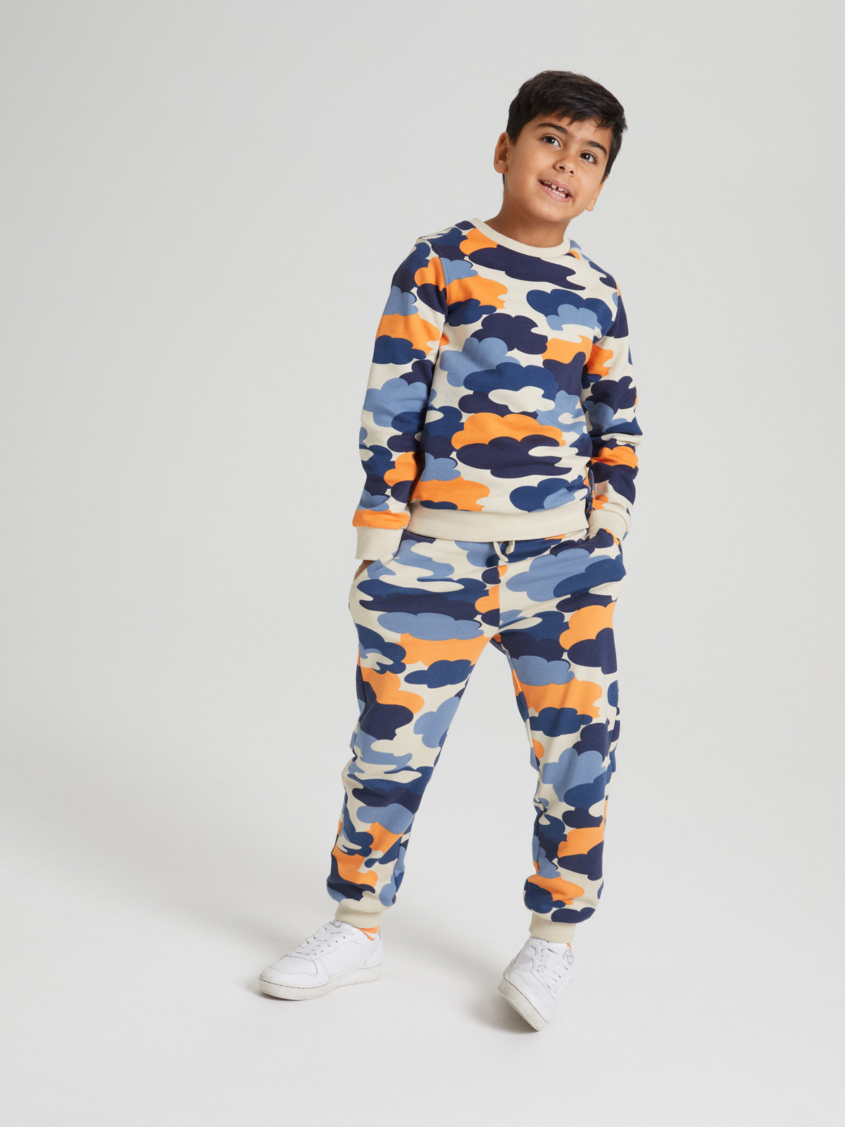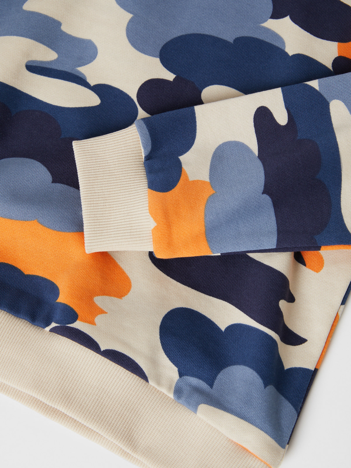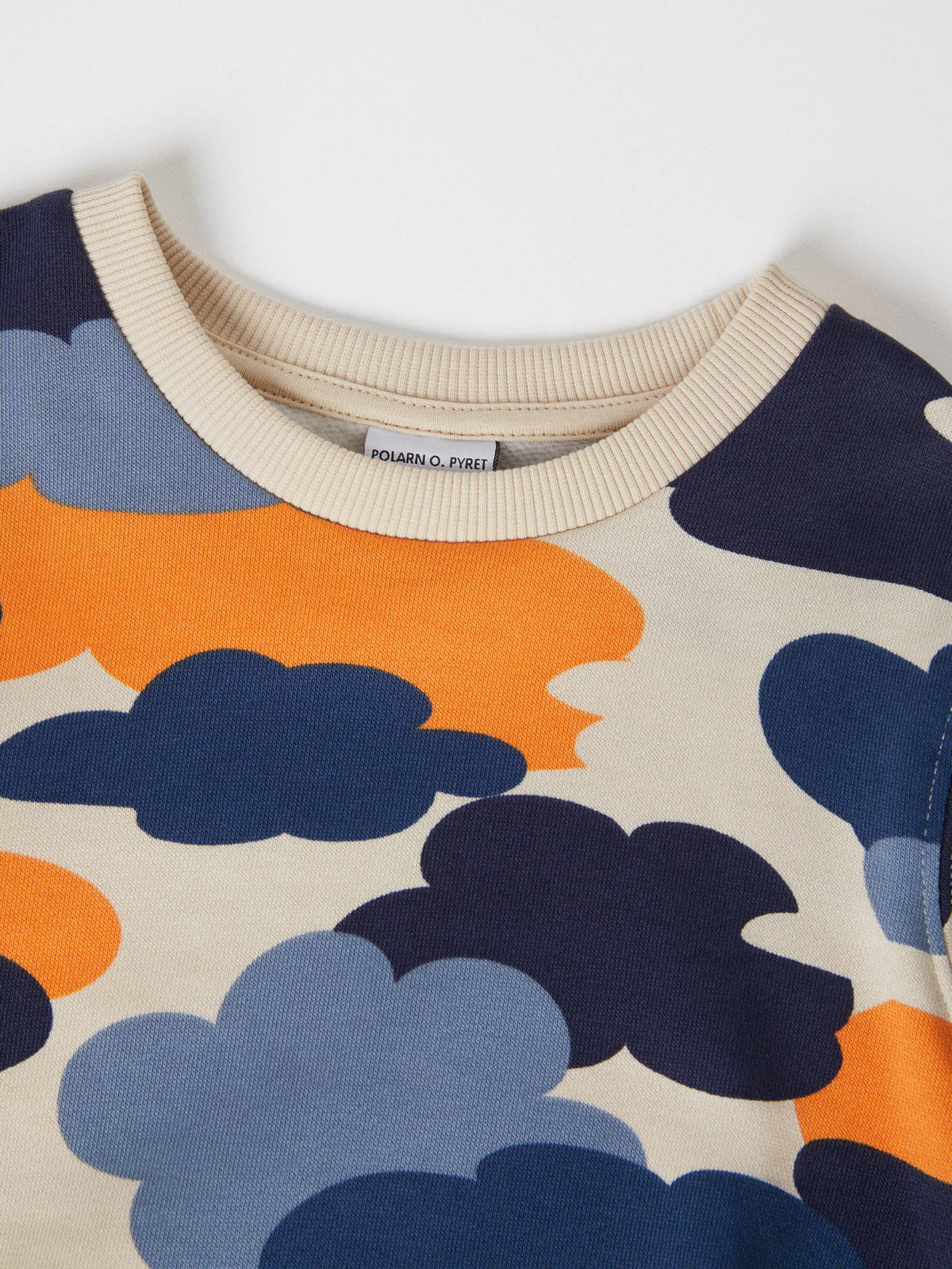 Soft and comfy sweatshirt in 100% organic cotton, with an allover print of small multitone clouds.