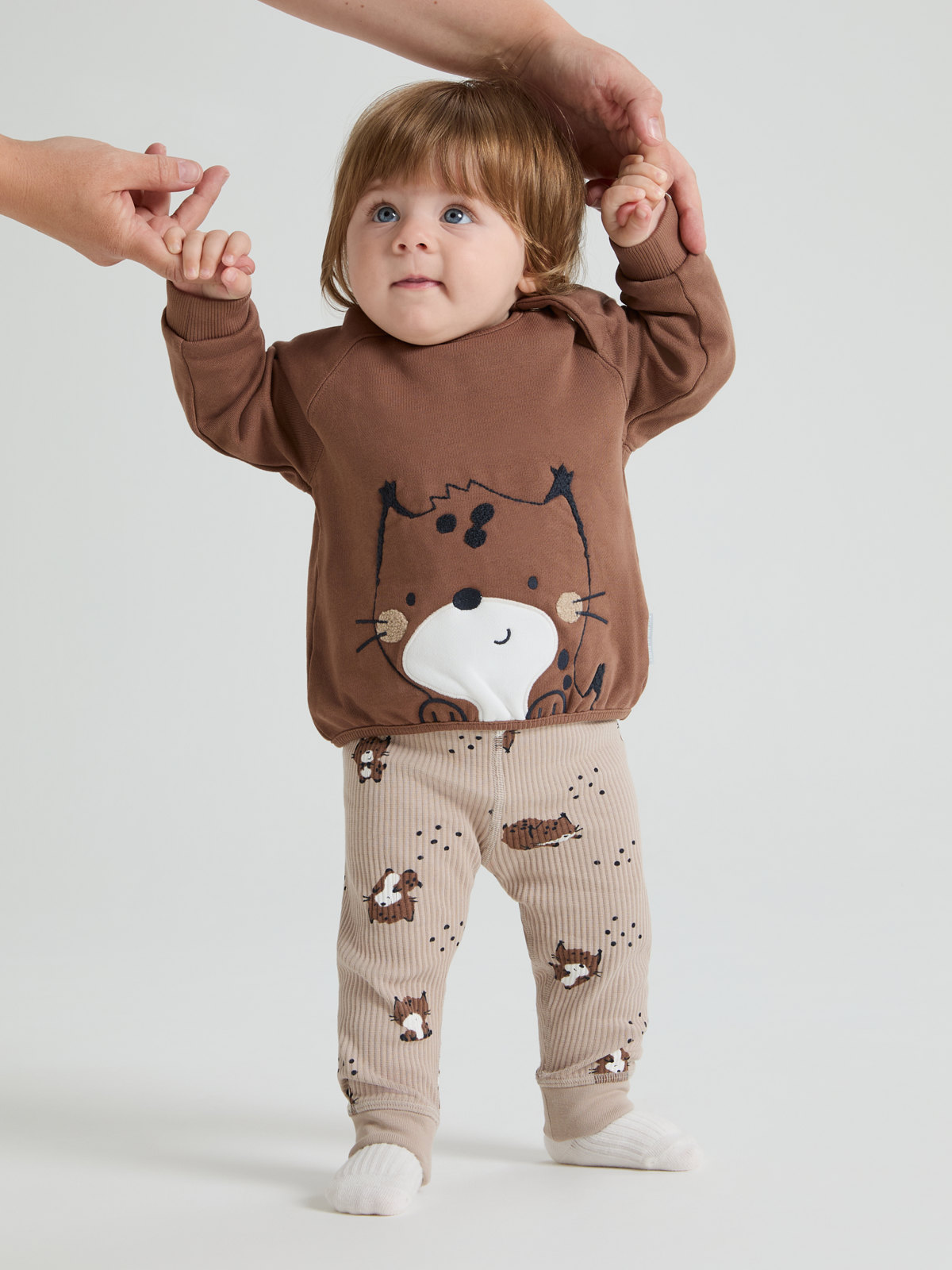 Loose-fit top in comfy sweatshirt fabric in 100% organic cotton for baby. The top features an embroidered lynx on the front, and soft cuffs.