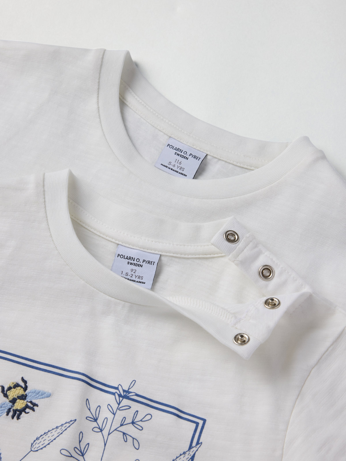 Size 86–92 has snaps on one shoulder to facilitate dressing.