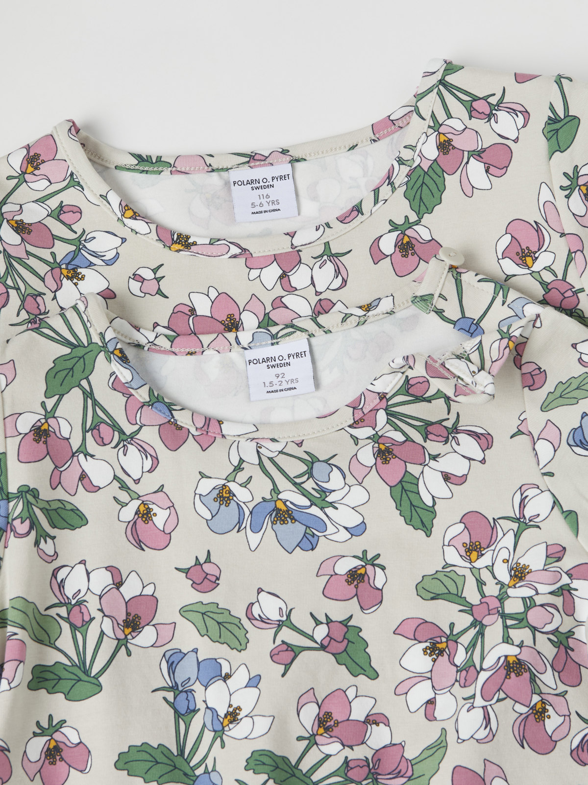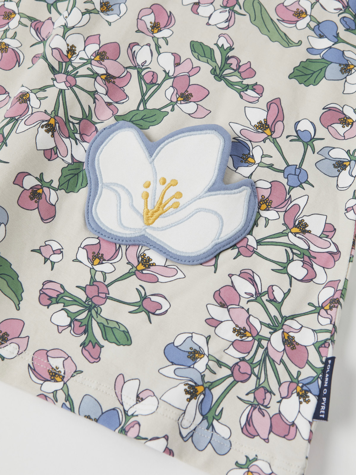 Floral jersey top with puff sleeves and playful pockets in soft organic cotton – perfect for both party and everyday wear.