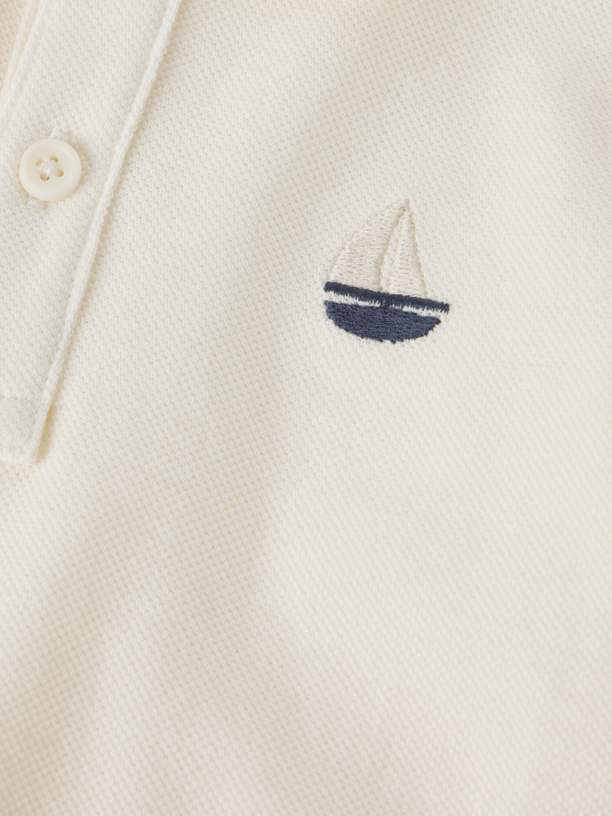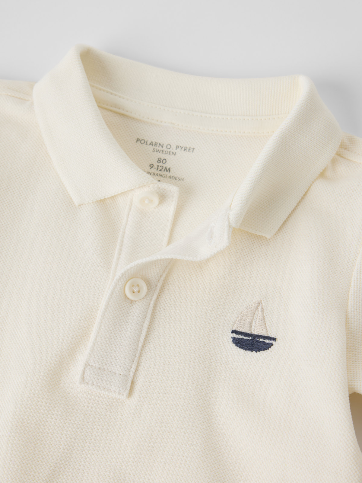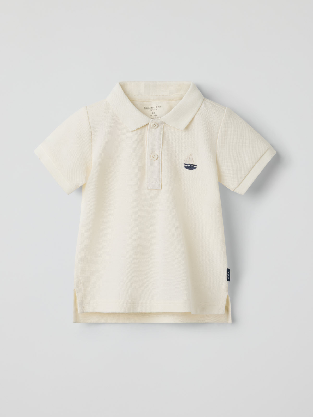Short-sleeved polo shirt in 100% organic cotton with collar and button placket for baby – a lovely piece for any occasion! Features a small embroidered sailboat on the chest and ribbed cuffs for a comfortable fit. Perfect for matching with siblings! polo shirt sailboat baby