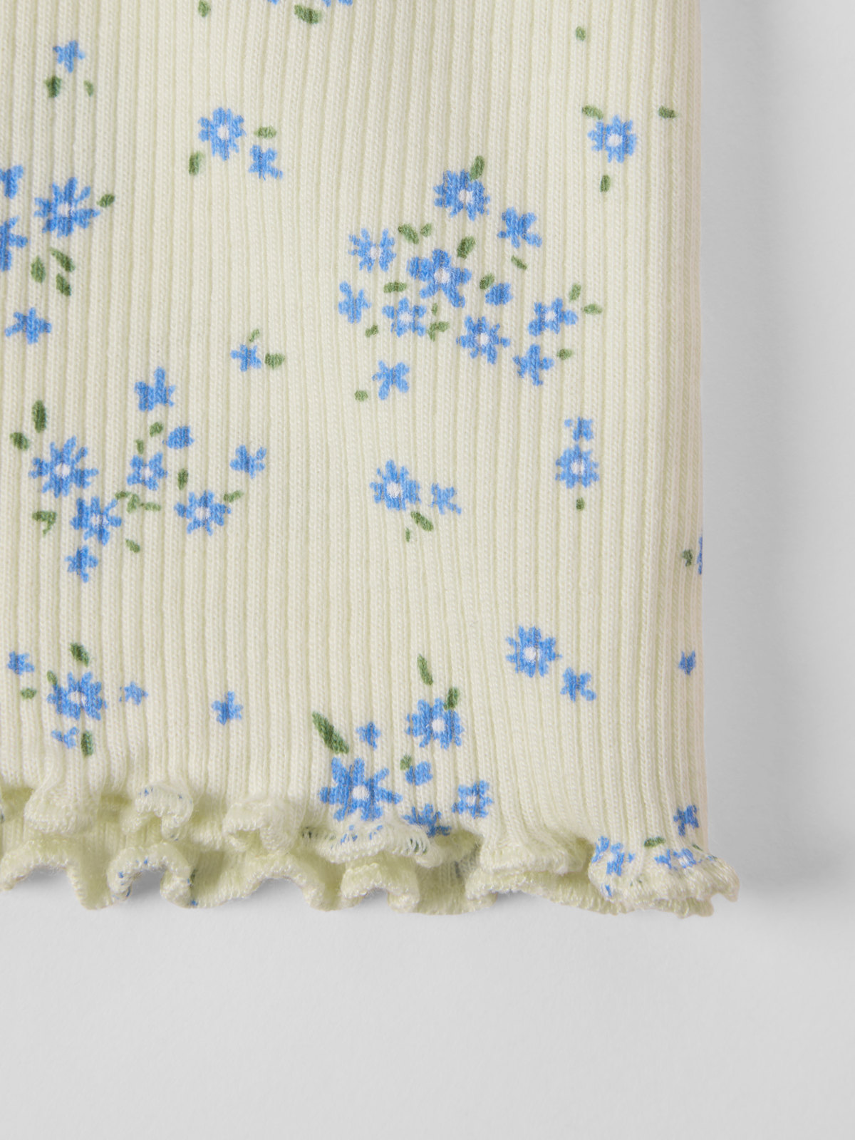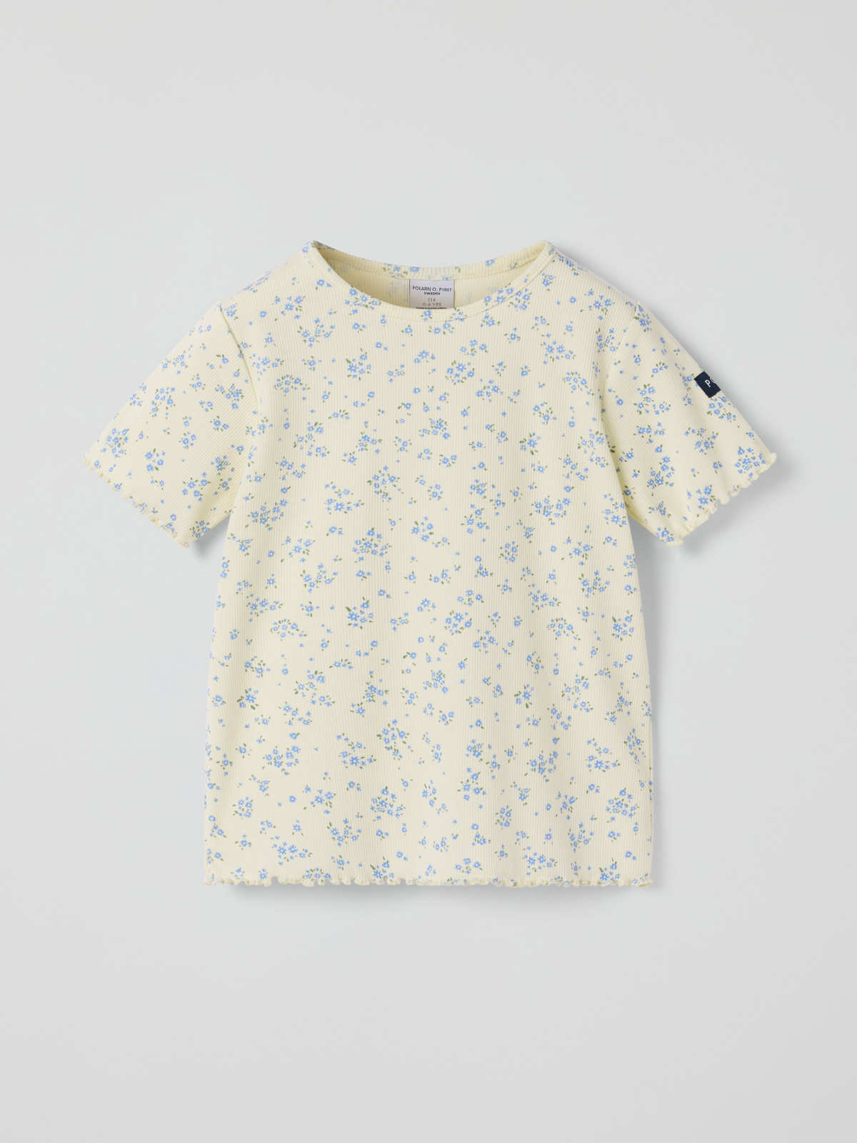 Soft ribbed T-shirt in a gentle blend of Tencel™ lyocell and organic cotton. The mix keeps little ones cool, comfortable and is kind to sensitive skin. Finished with a sweet scalloped edge on the sleeves and hem.