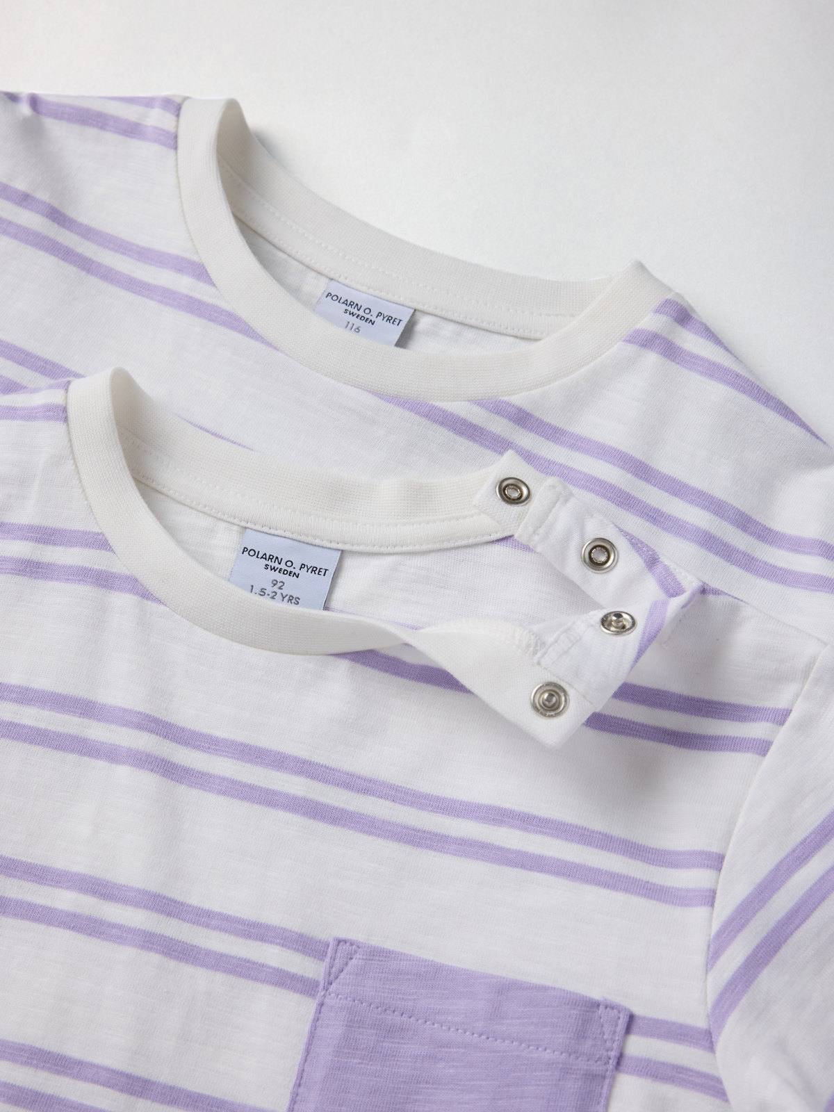 Size 86–92 has snaps on one shoulder to facilitate dressing.