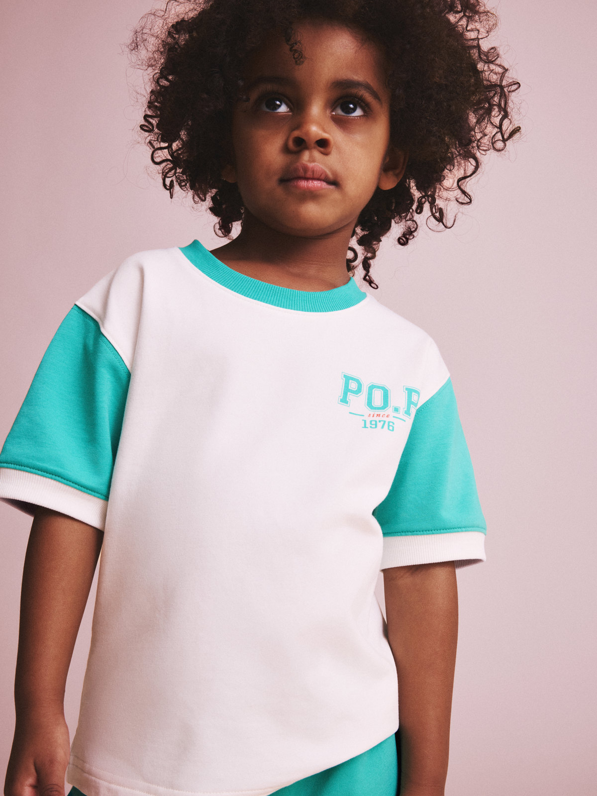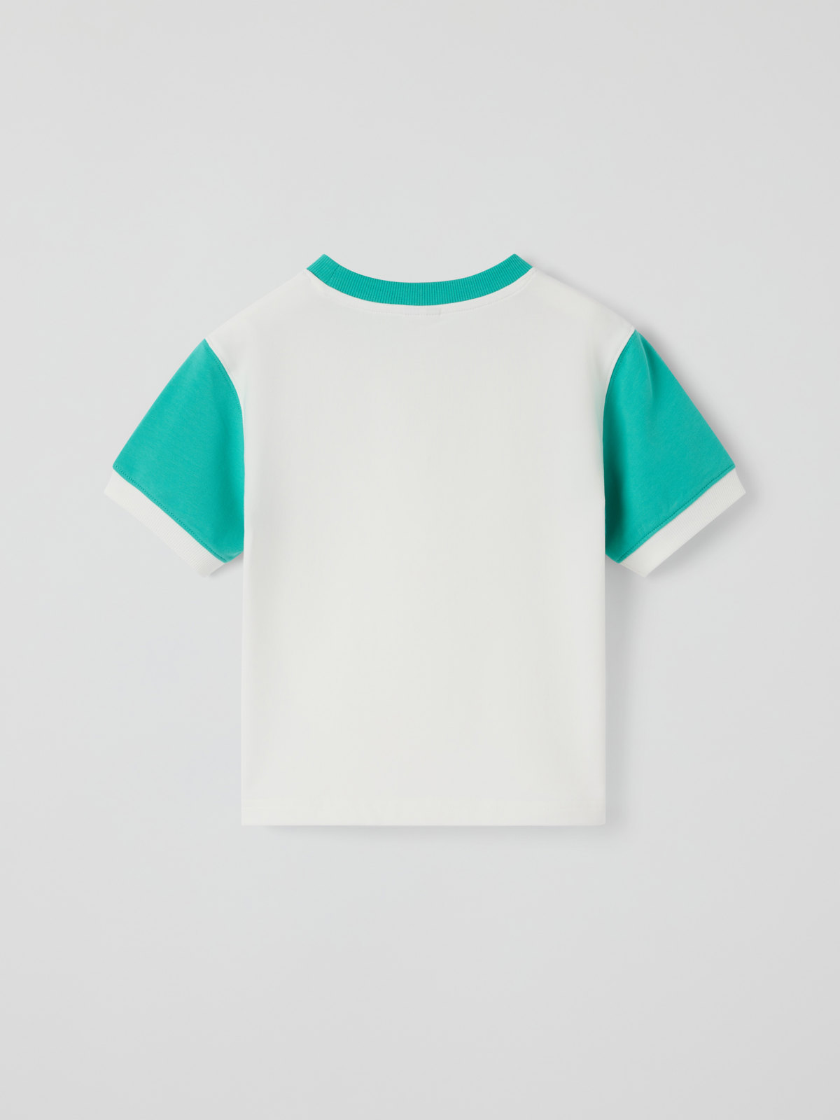 T-shirt in a lightweight sweatshirt fabric with a softly brushed inside, made from organic cotton – ideal for active kids! Features contrast-coloured sleeves, ribbed neckline and a sporty logo on the chest.