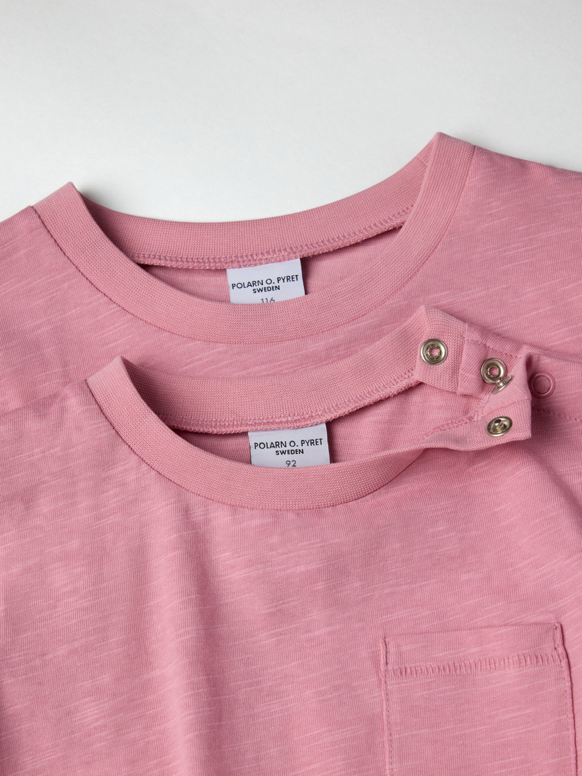 Solid color T-shirt in 100% organic cotton – perfect for any occasion! The T-shirt features a small chest pocket, and is available in several colors that match the entire collection.