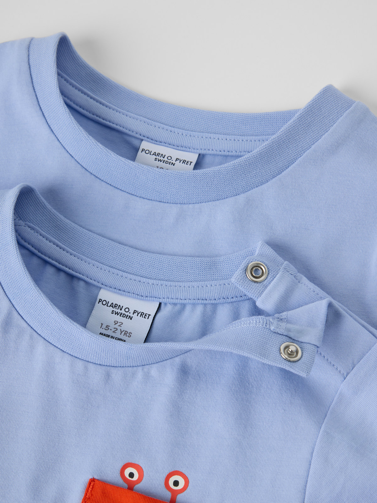 Sizes 86-92 feature press studs on one shoulder for easy changing.
