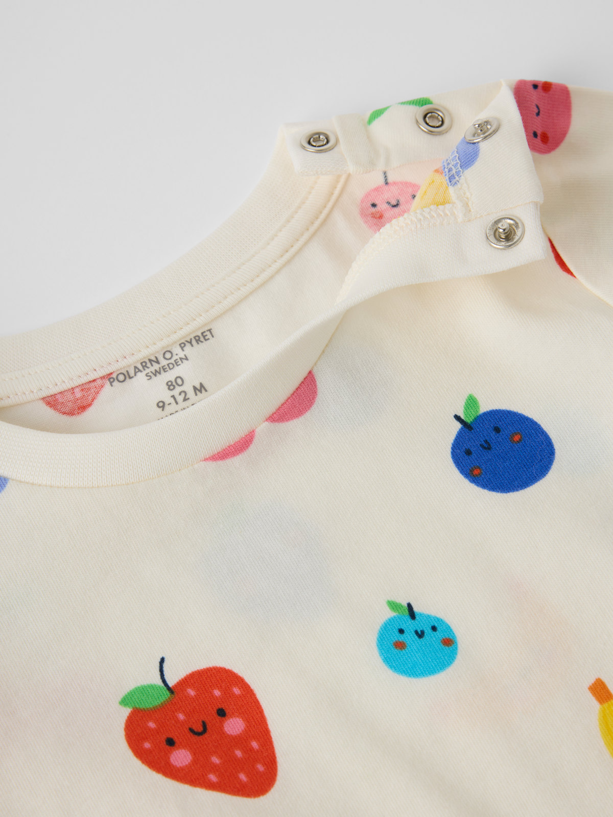 T-shirt in organic cotton – a wardrobe staple to love for seasons to come! All-over cheerful berries. Shoulder poppers make changing easy.