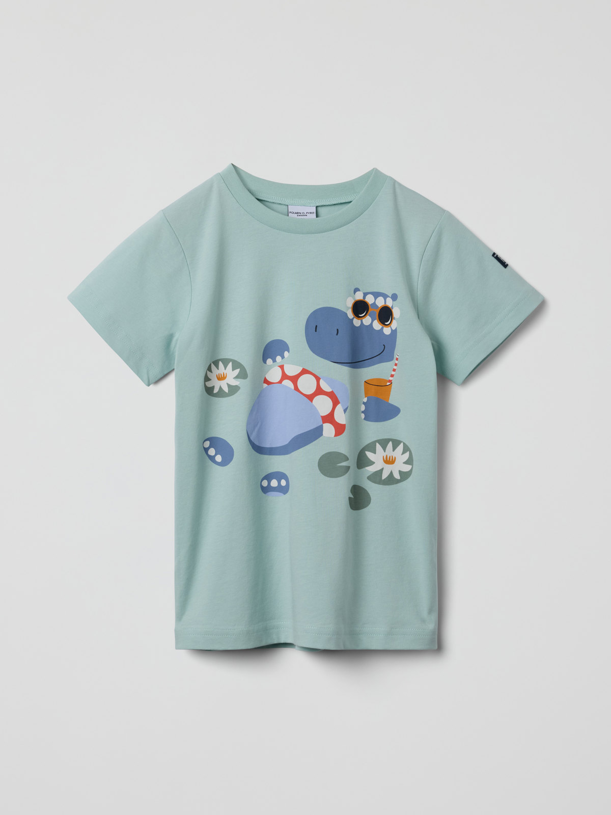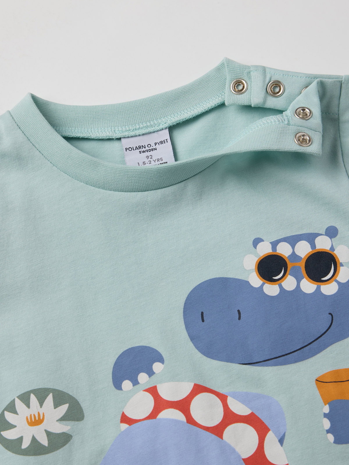 T-shirt in 100% organic cotton with playful print on the chest. Perfect for any occasion! The T-shirt is available in several different colors and prints that match the entire collection. Find your favorite color!