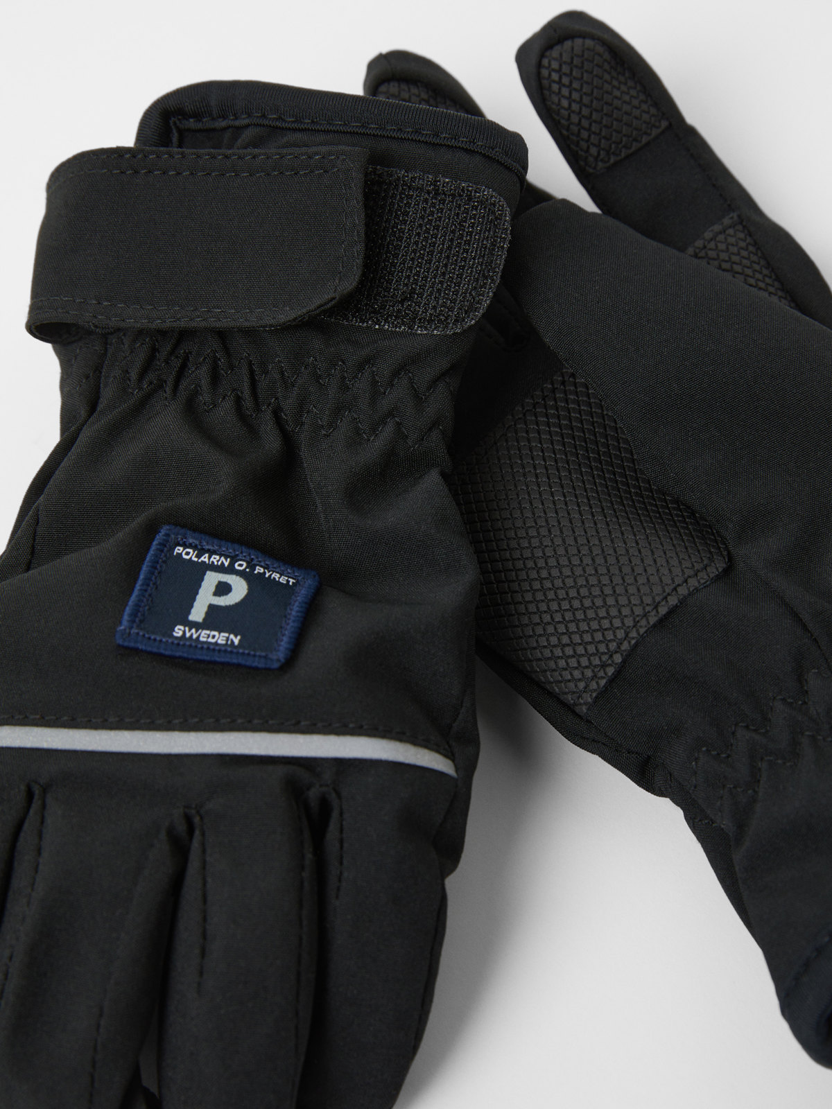 A pair of supple softshell gloves with a soft, brushed lining. The gloves feature powerful reflectors on the upper side and a grip-friendly surface on the palms. They also have an adjustable wristband that makes them easier to put on and take off.