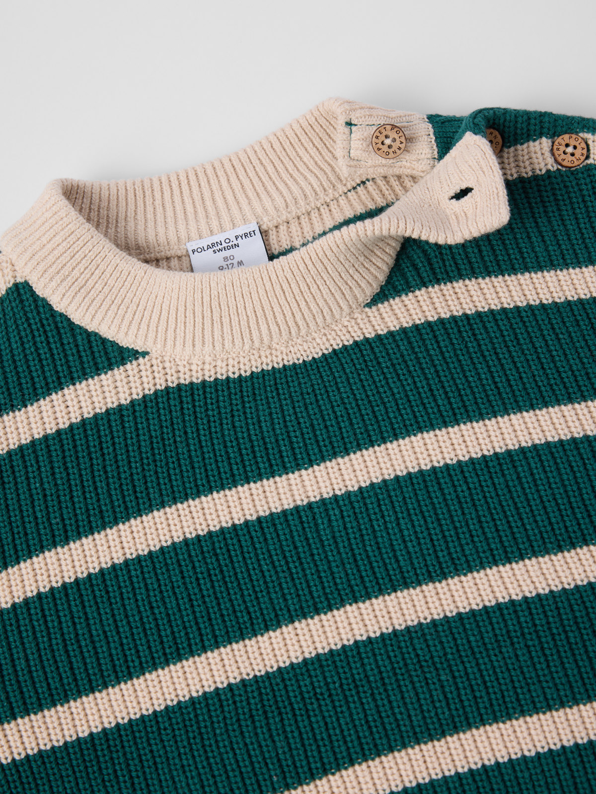 Knitted sweater in 100% organic cotton. A cosy autumn favourite. The sweater features a ribbed neckline and cuffs.