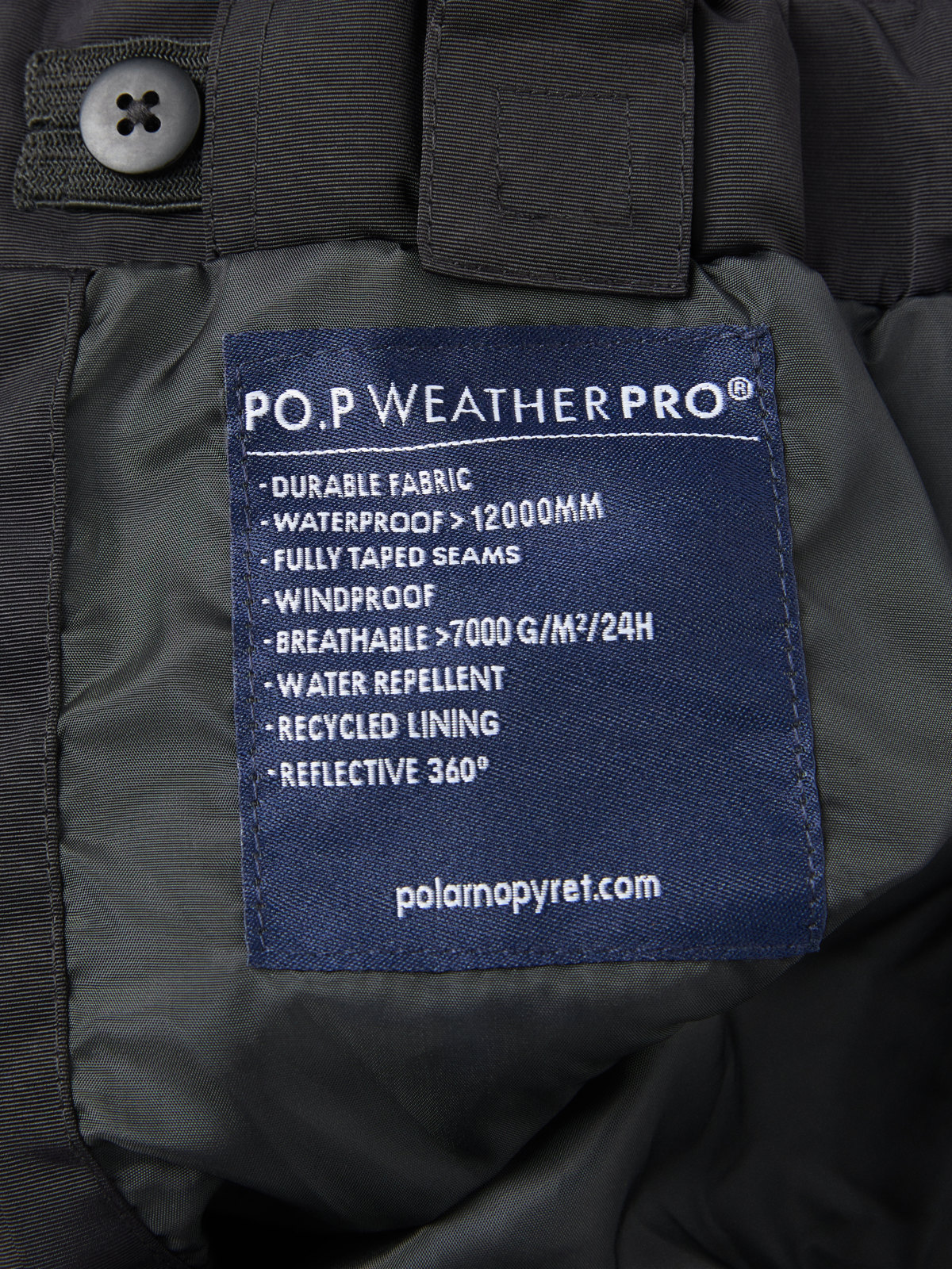 Outerwear that is marked PO.P WeatherPro® fulfills all our requirements for functional outerwear with regard to durability, water tightness, breathability and safety.