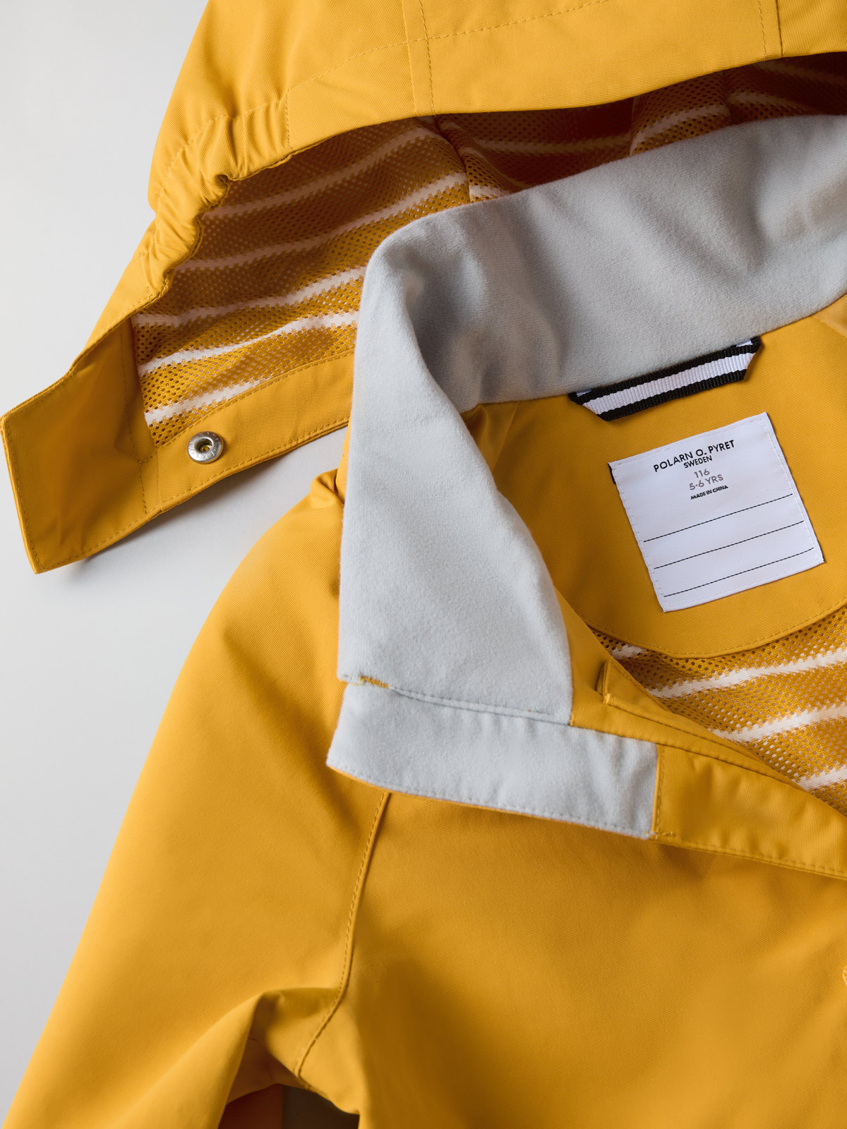 • Adjustable hood is detachable and fastened with snaps; it also has elastic edging for the perfect fit