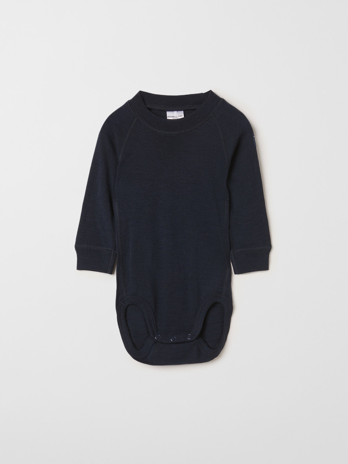 Long sleeve bodysuit in warm merino wool for baby. A perfect first layer under the snow suit!