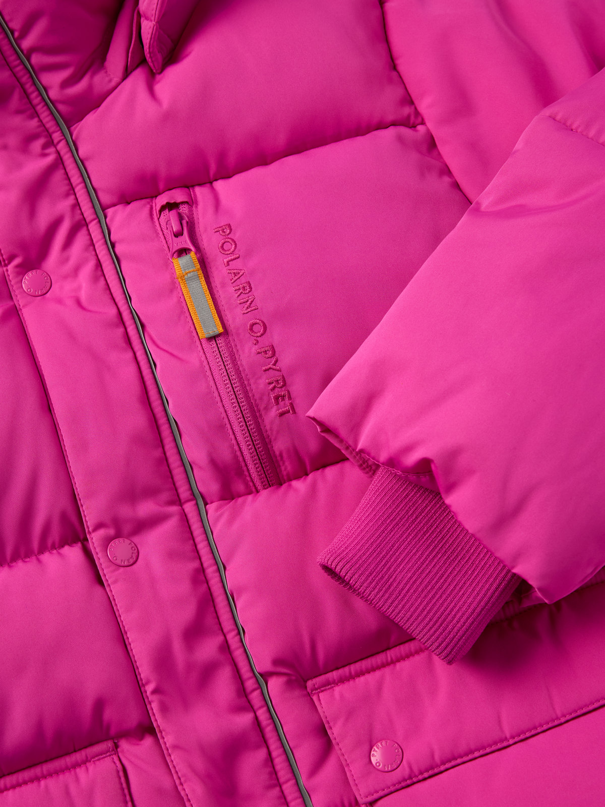 • Thick and warm padding in recycled polyester which, together with the dense weave of the fabric, protects against wind, rain and snow