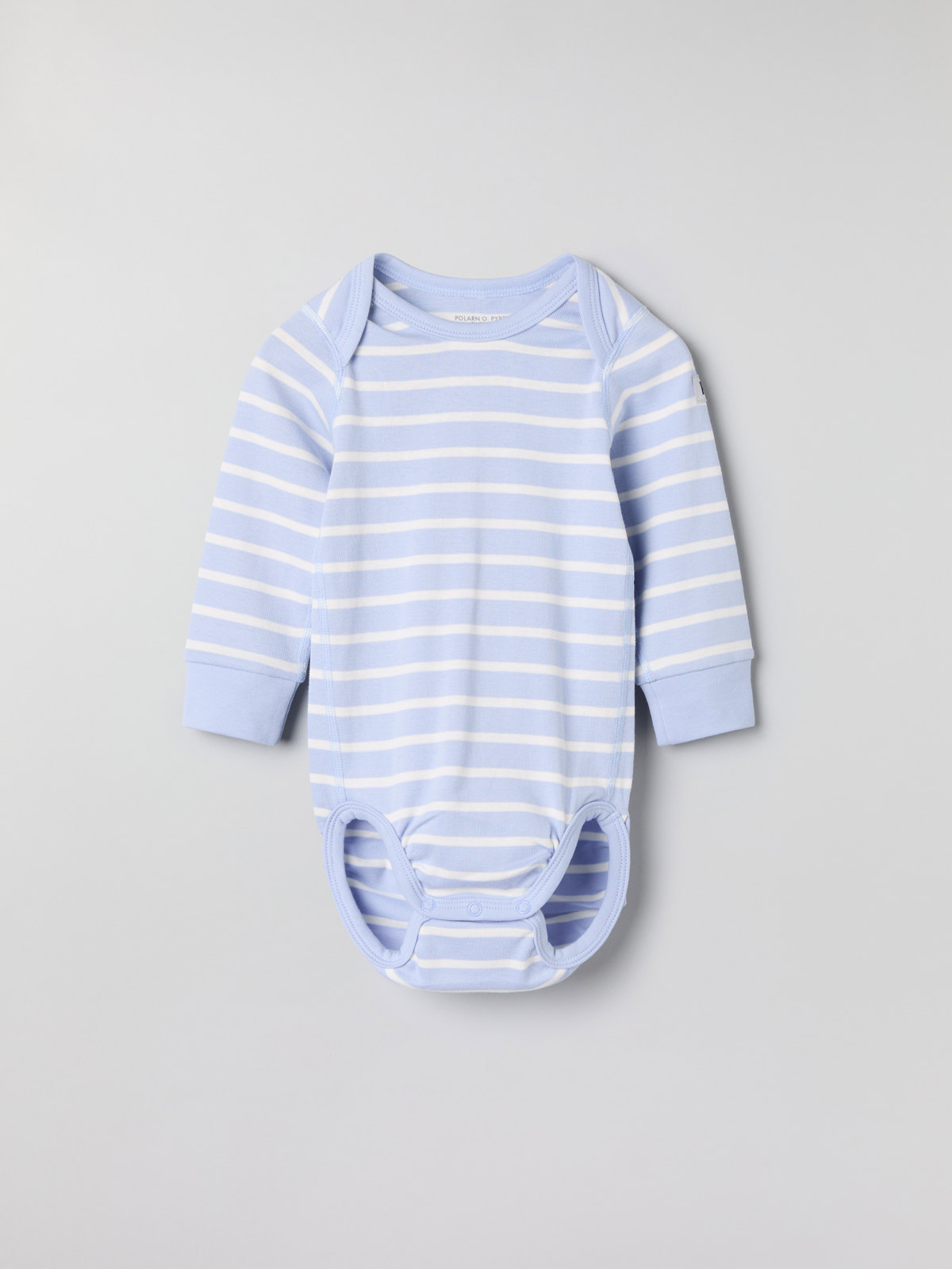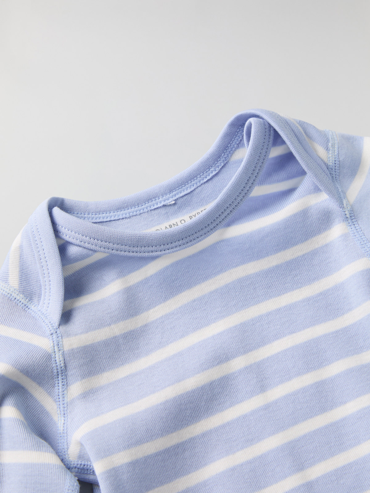 The bodysuit features our classic stripes and an envelope neckline, making it easy to slip over baby’s head. It also has soft, ribbed cuffs.