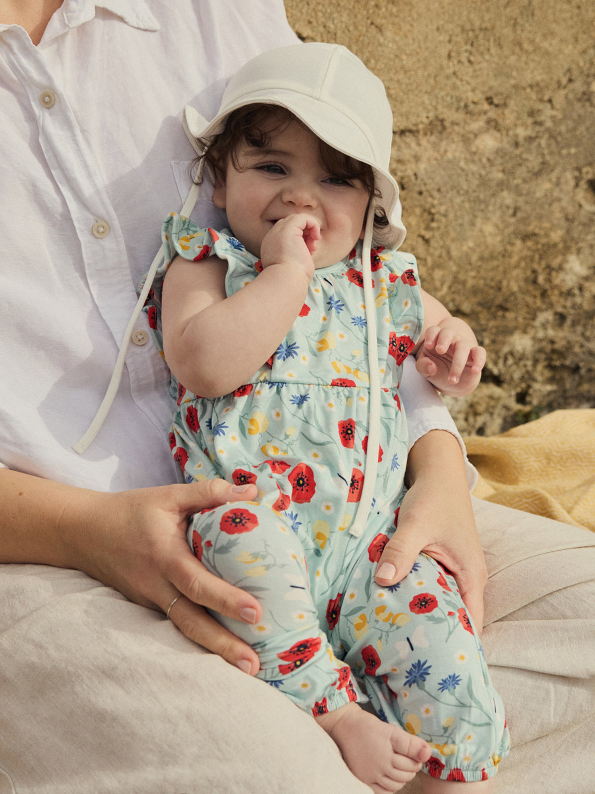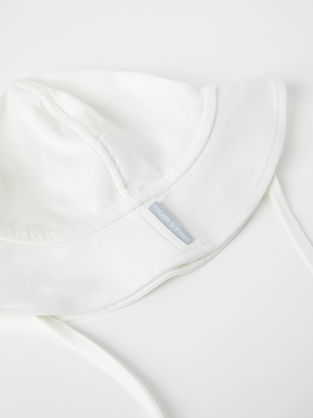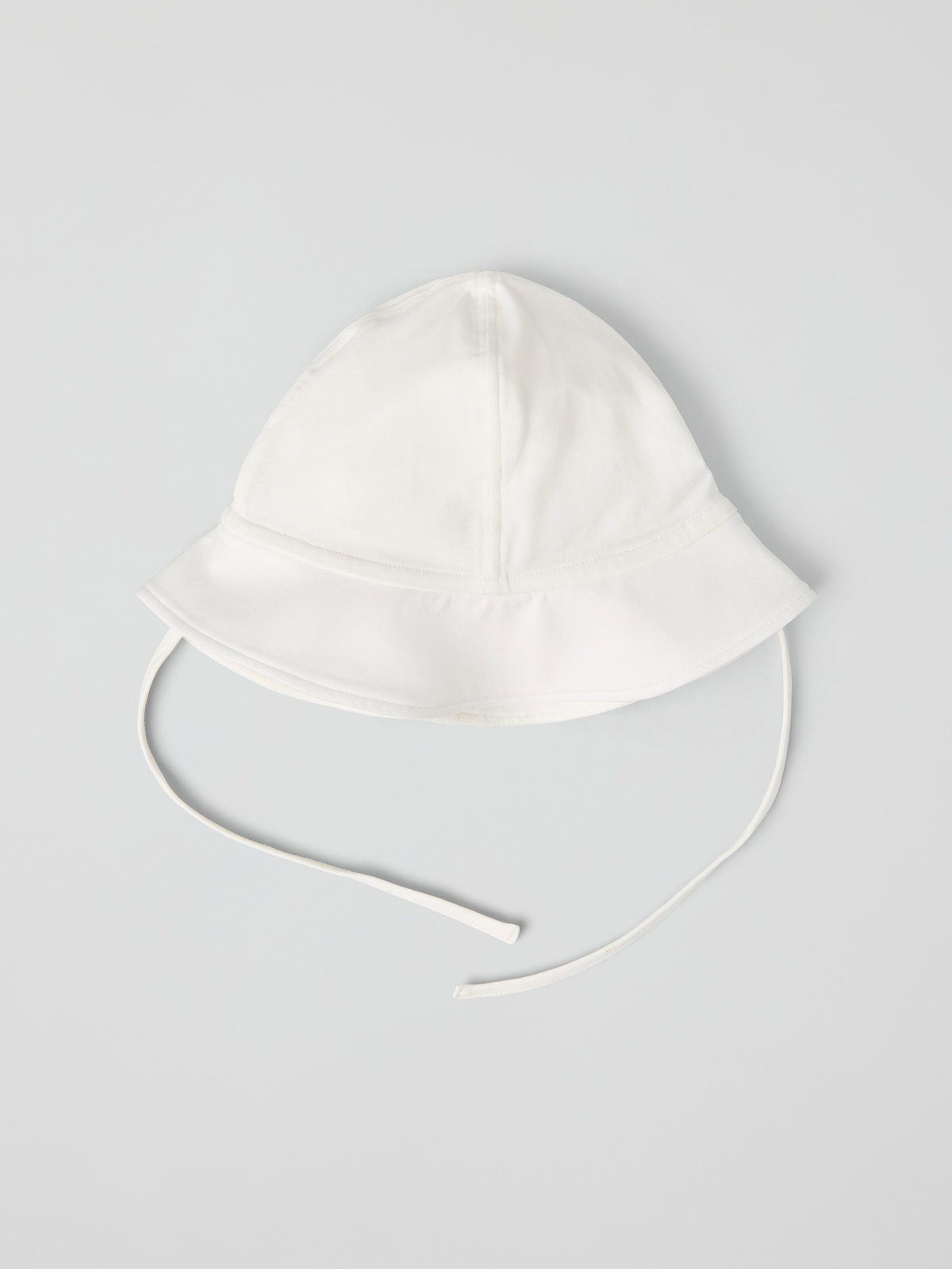 Solid color sun hat in soft, organic cotton for baby. Perfect protection against the sun's strong rays. The tie strings under the chin keep the hat in place.
