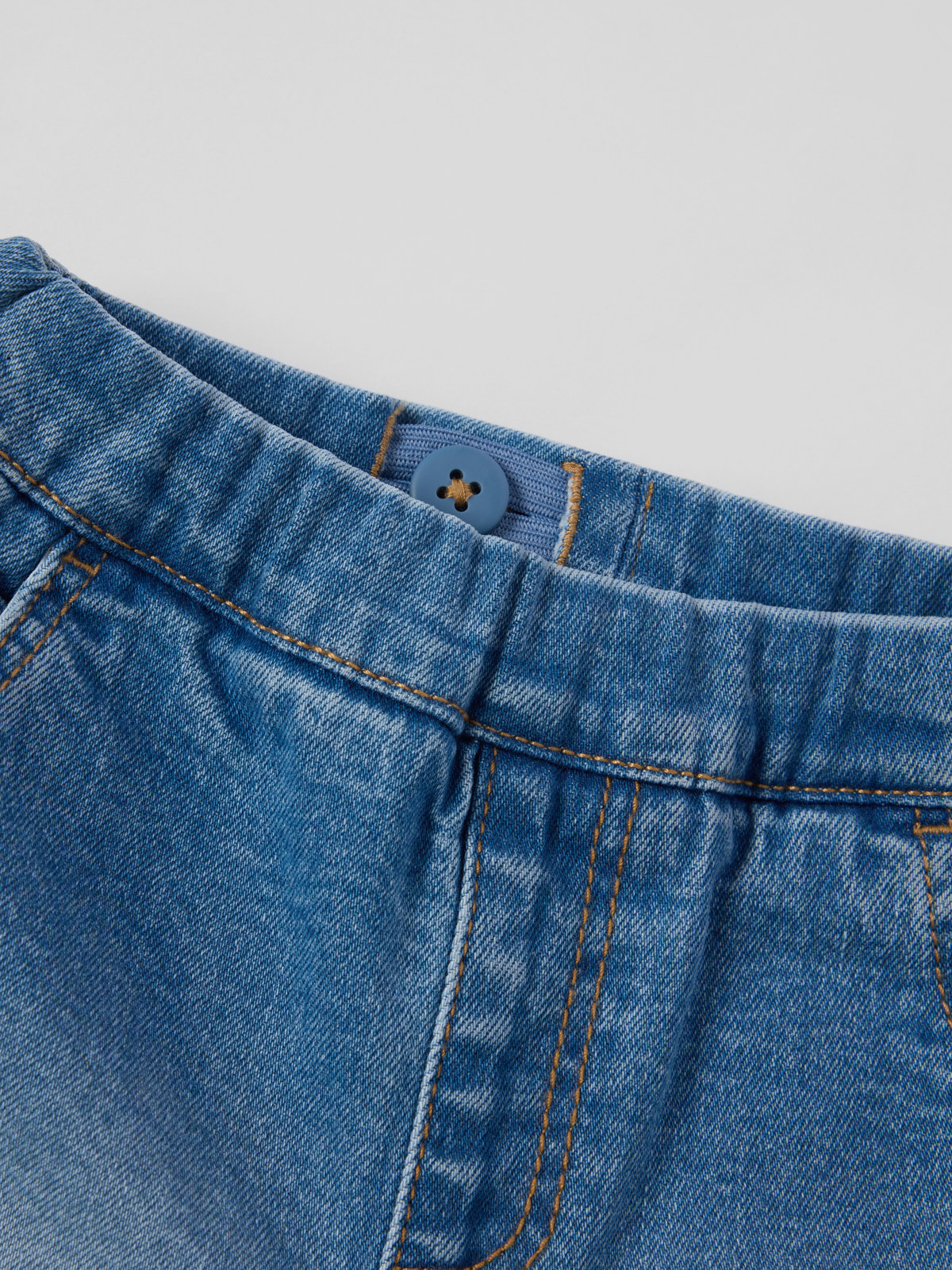 Pull-on trousers in soft, stretchy denim – just right for spring days! Features an elasticated waist, tapered legs and side pockets. denim
