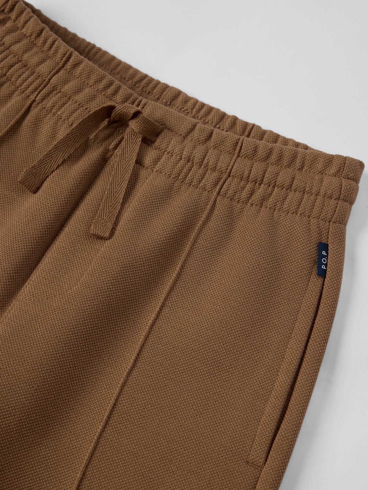 Trousers in soft piqué made from organic cotton and recycled polyester – comfortable and stylish for both everyday wear and special occasions! The trousers feature front and back creases, side pockets and a back pocket. The elasticated waist can be adjusted with a drawstring.