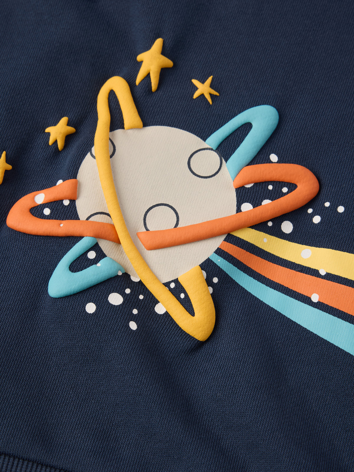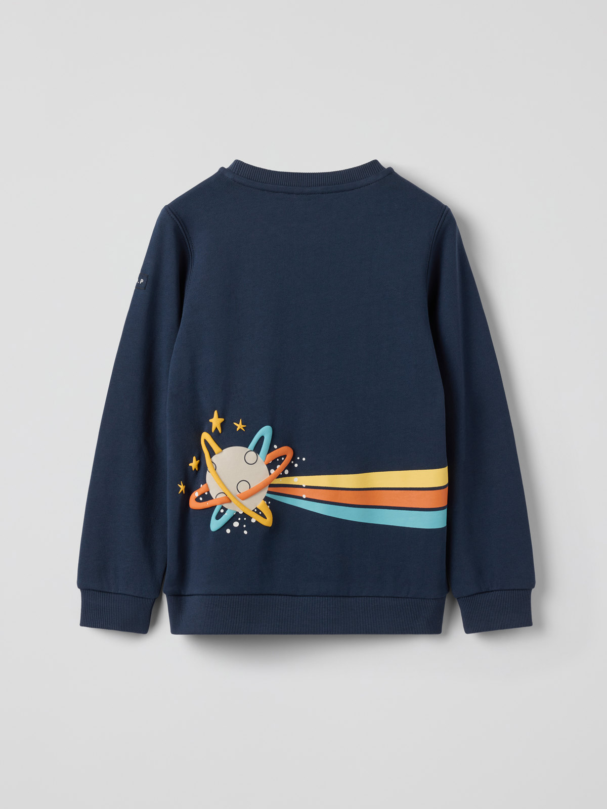 Comfy top in soft, organic cotton – perfect for any occasion! This top features a large space-themed print on the front that continues onto the back.It also features a soft, ribbed neckline and cuffs.