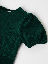 The dress features puff sleeves with elastic cuffs, and a wide skirt. It has a back placket.