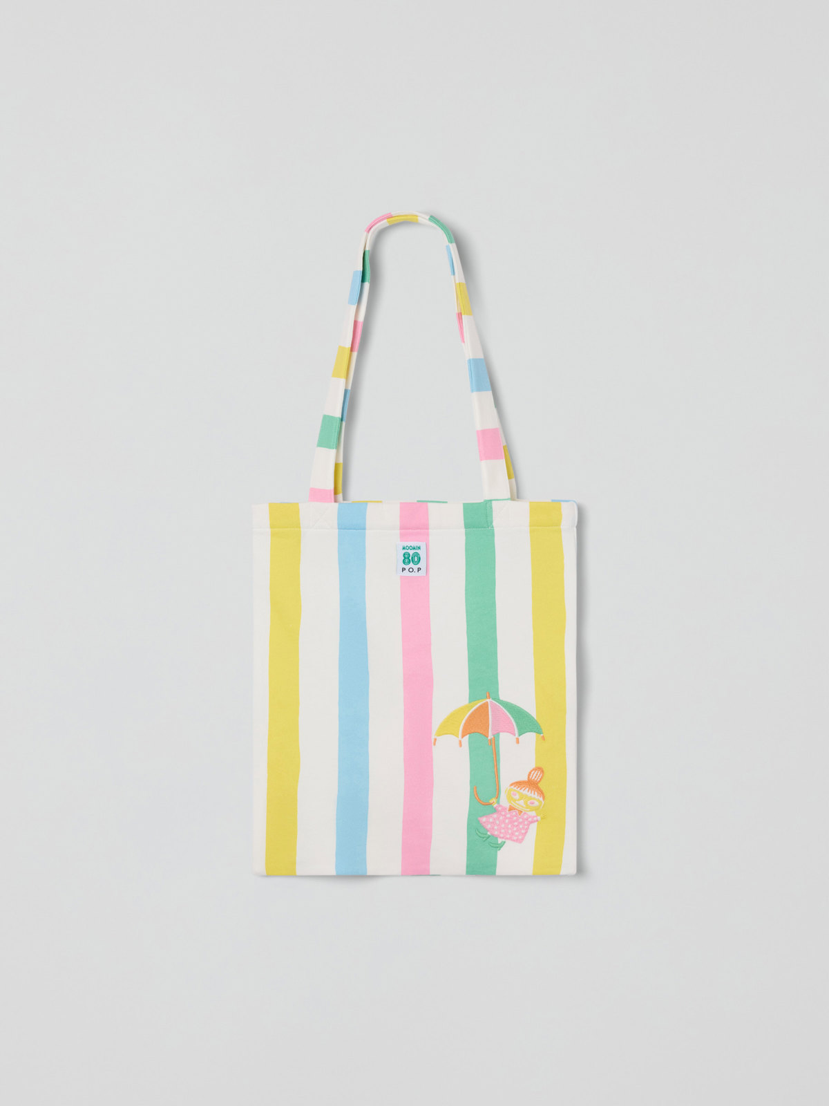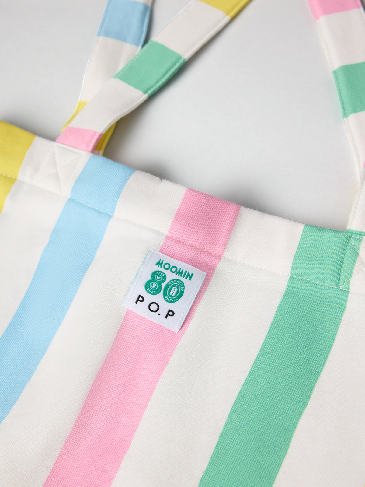 Fabric bag in 100% organic cotton with a thin sweatshirt quality. A practical and long-lasting all-round bag. The fabric bag is striped and features illustrations from Tove Jansson’s Moomin stories.