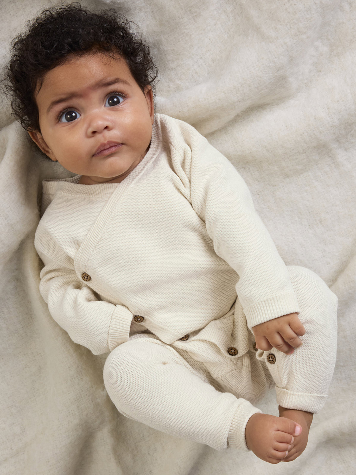 Knitted all-in-one in a soft blend of Tencel™ lyocell and recycled polyester – ideal for cosy days! The material mix feels gentle, cool and kind to sensitive skin. The all-in-one features soft cuffs at the sleeves and legs for a comfortable fit, and the long button placket makes dressing and undressing easy.