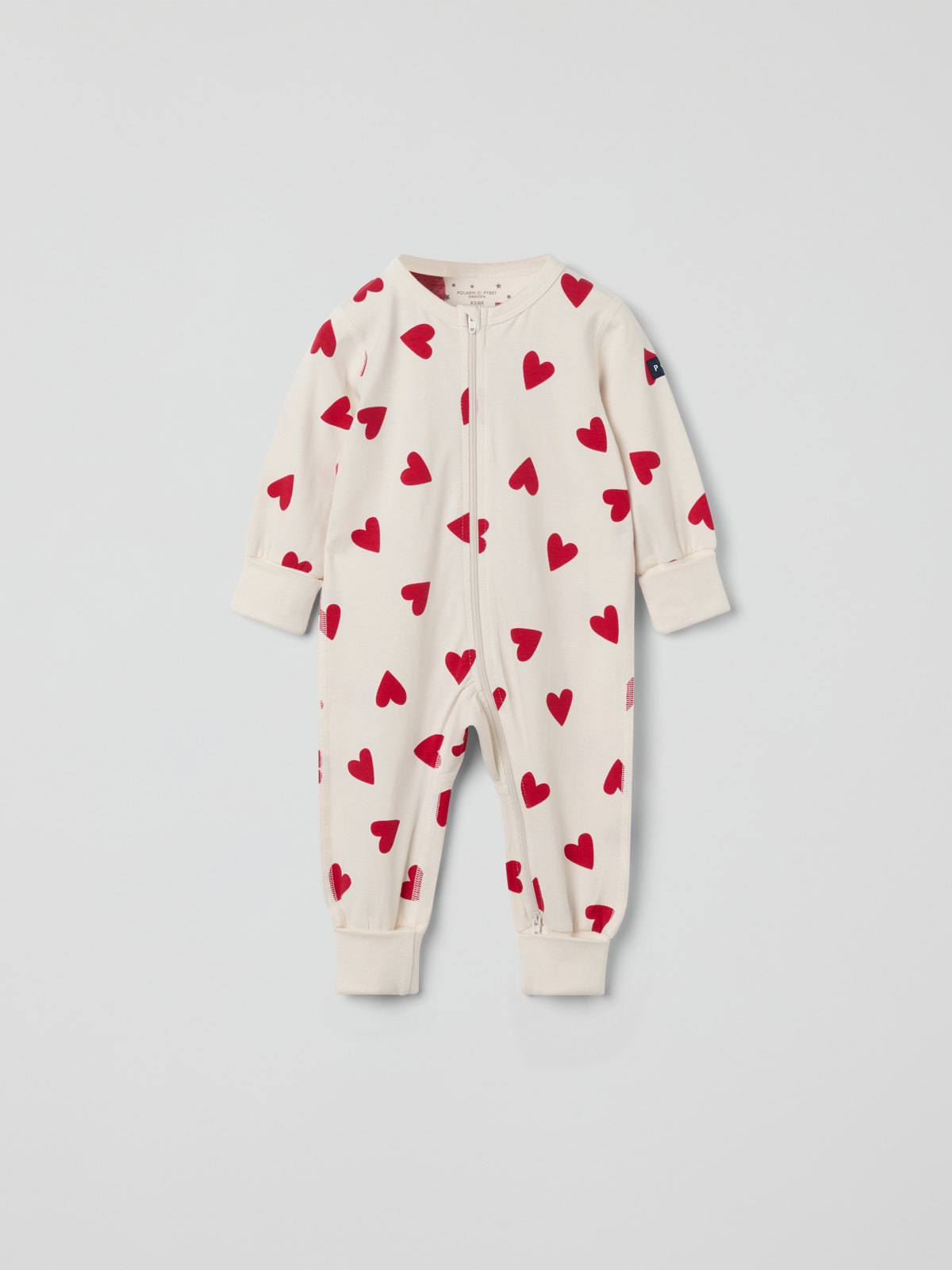 All-in-one pyjamas in soft, organic cotton, with extra soft, flatlock seams that are gentle on sensitive skin. The cuffs at the sleeve and legs are extra long and can be folded down as the child grows. The long, two-way neck-to-ankle zipper facilitates dressing.