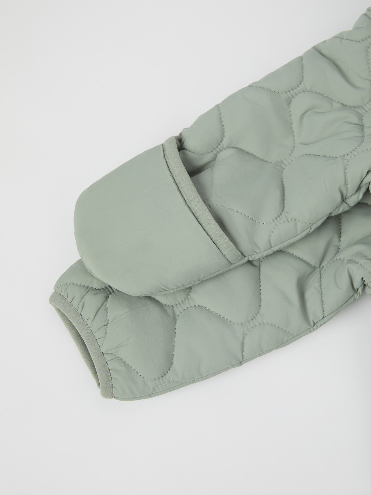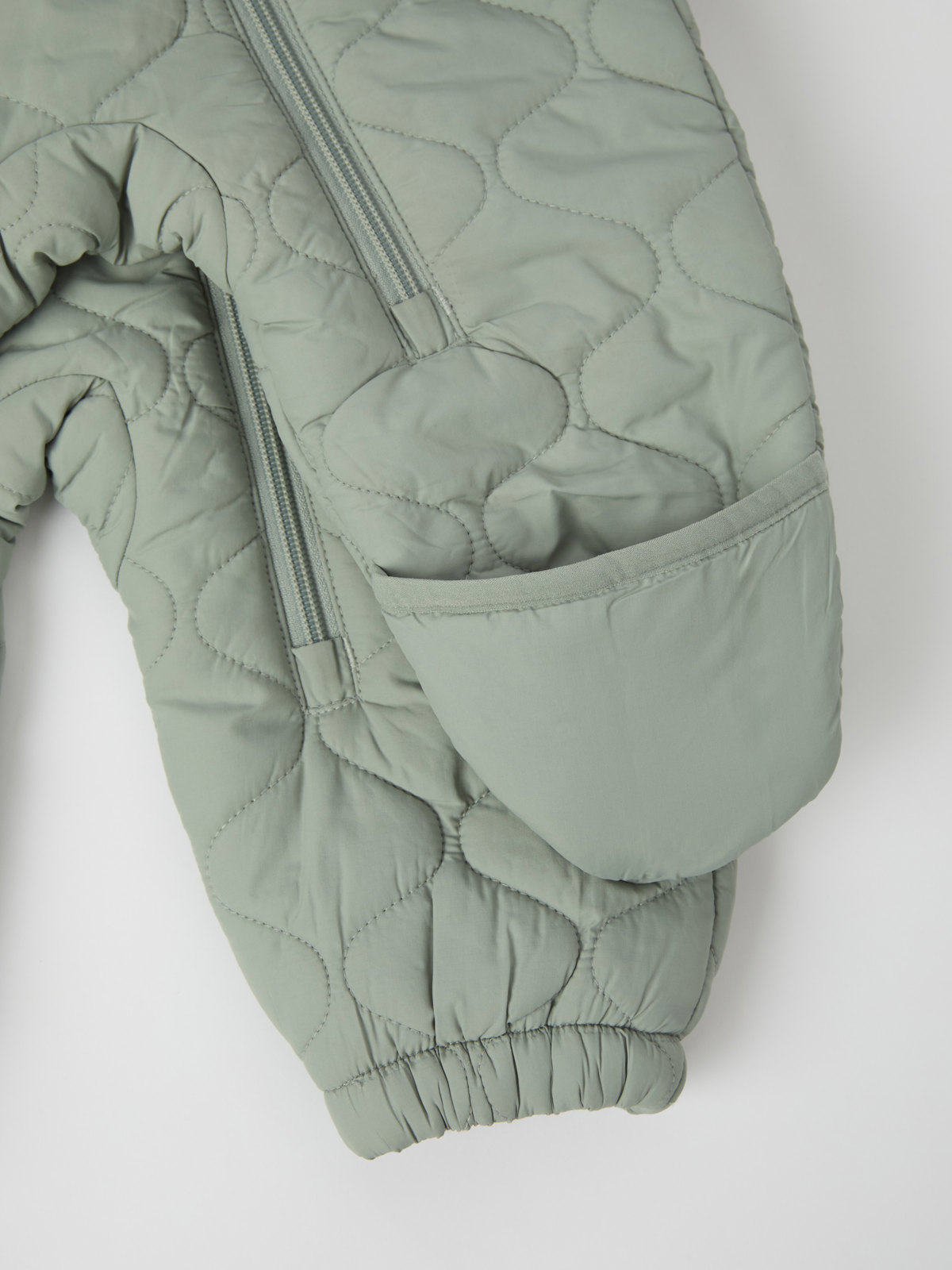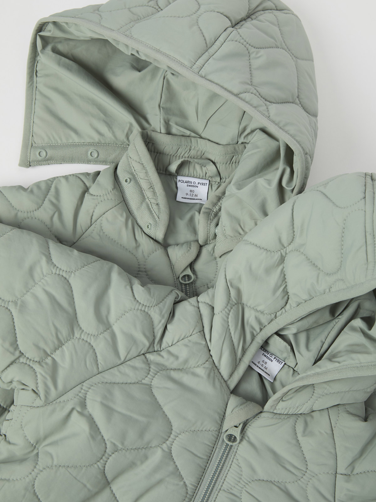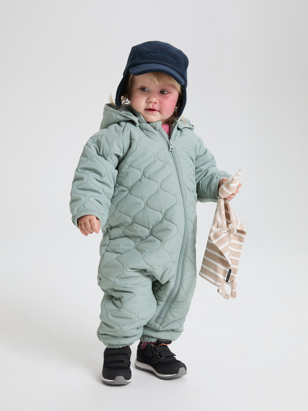 A windproof and water-repellent quilted all-in-one with soft padding for baby – perfect for the stroller!