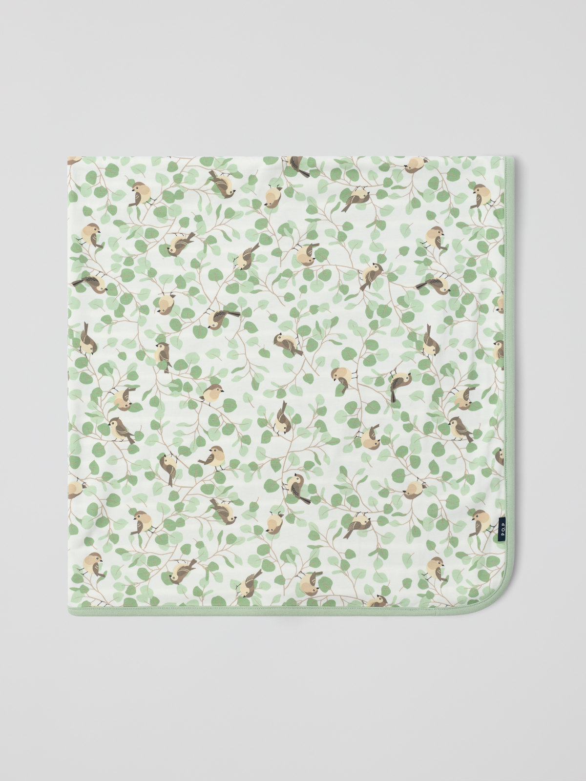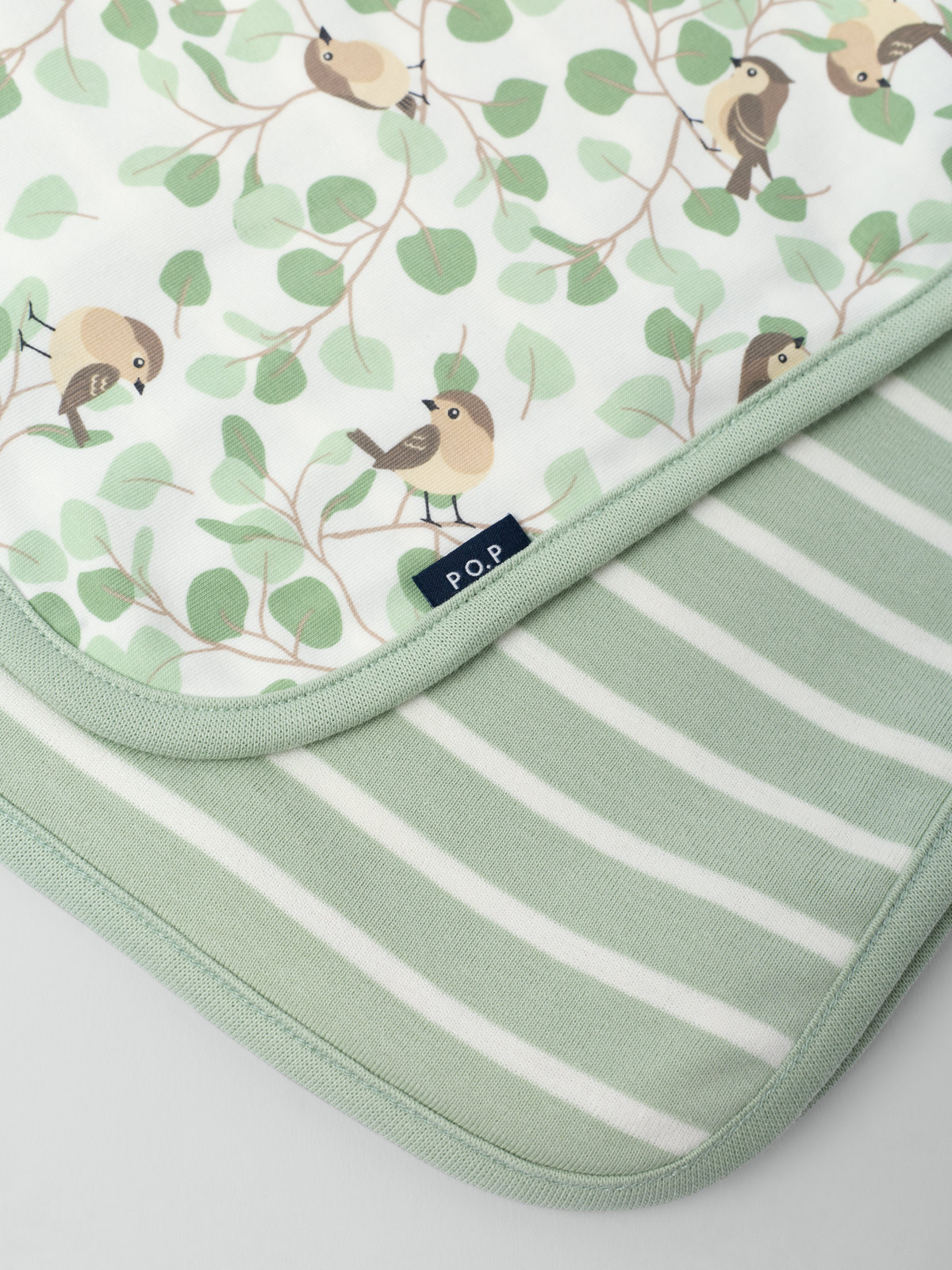 Soft and cosy baby blanket in organic cotton, gentle on sensitive skin – perfect for the pram or at home. The blanket has a pretty print on one side and our classic stripe on the other.