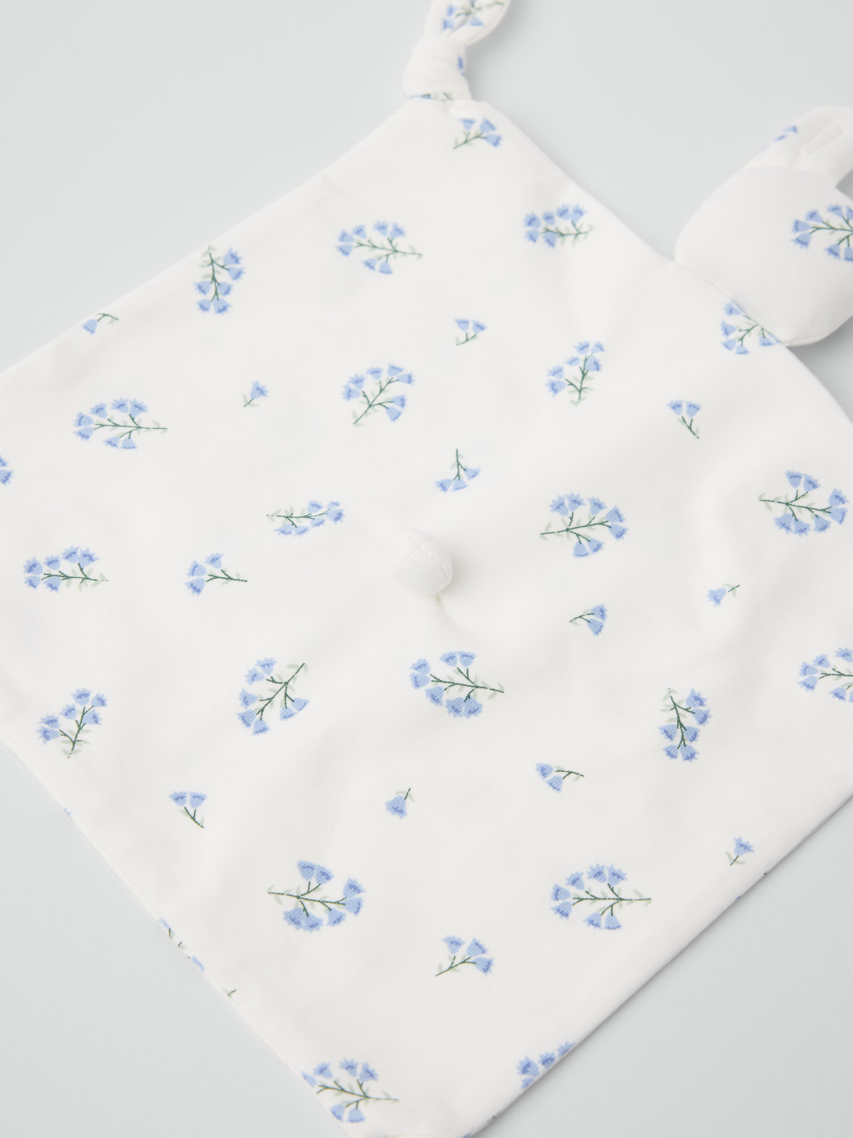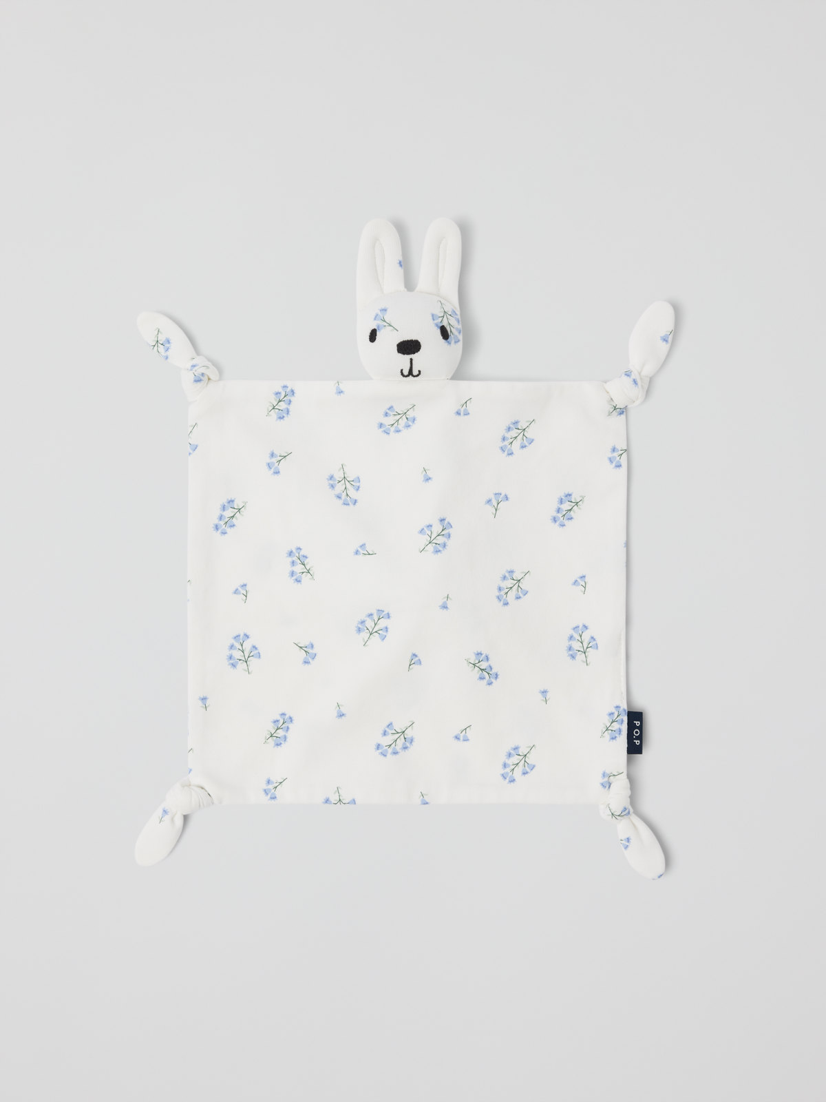 Soft comfort blanket in organic cotton, gentle on sensitive skin – perfect for the pram, bed or when travelling. The blanket features a padded little bunny face and knotted corners.