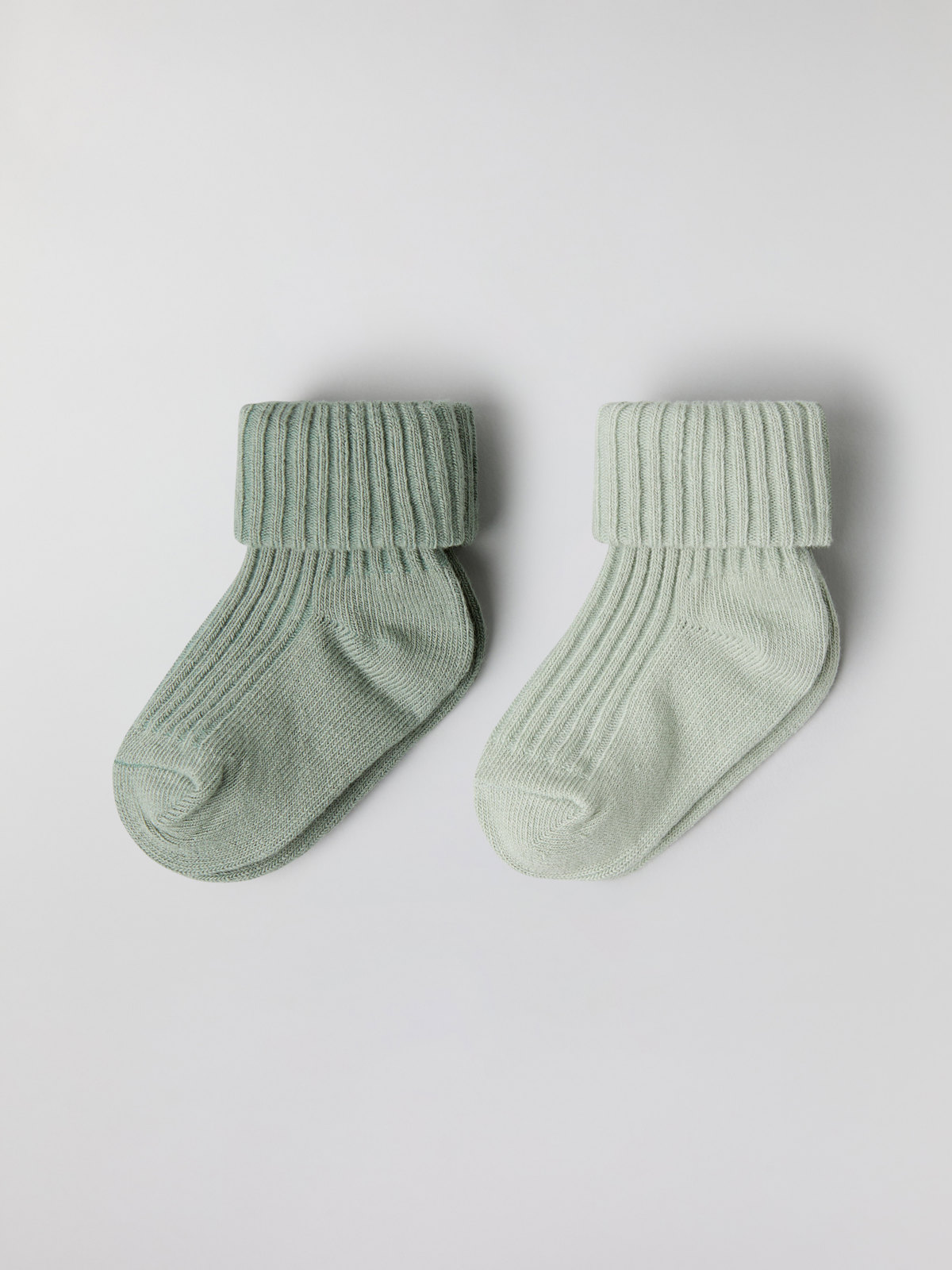 Stock up your sock drawer with this 2-pack of solid color socks in soft, organic cotton for baby. The socks have soft, fold-over cuffs that are gentle on the skin.