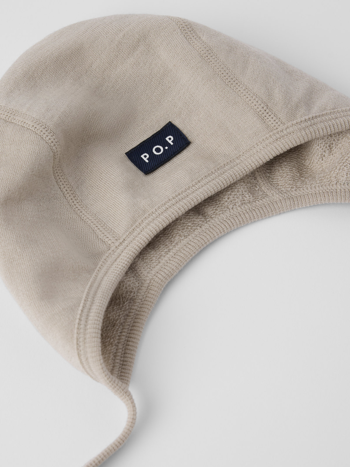 Baby helmet hat in warm merino wool terry – a must-have in the cold! The wool terry absorbs moisture effectively and keeps the child warm and dry. The helmet hat is a little thicker, but has good air circulation, thanks to the tiny holes. The hat is sewn with extra soft seams that are gentle on the skin.