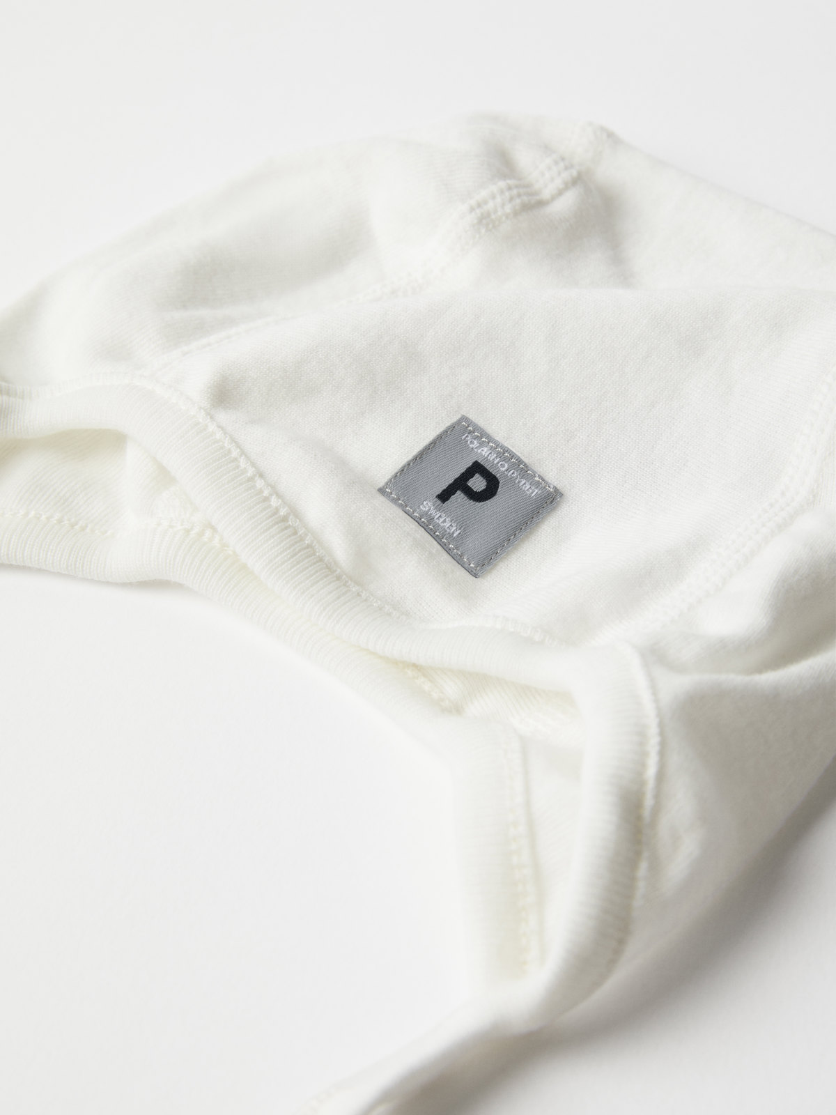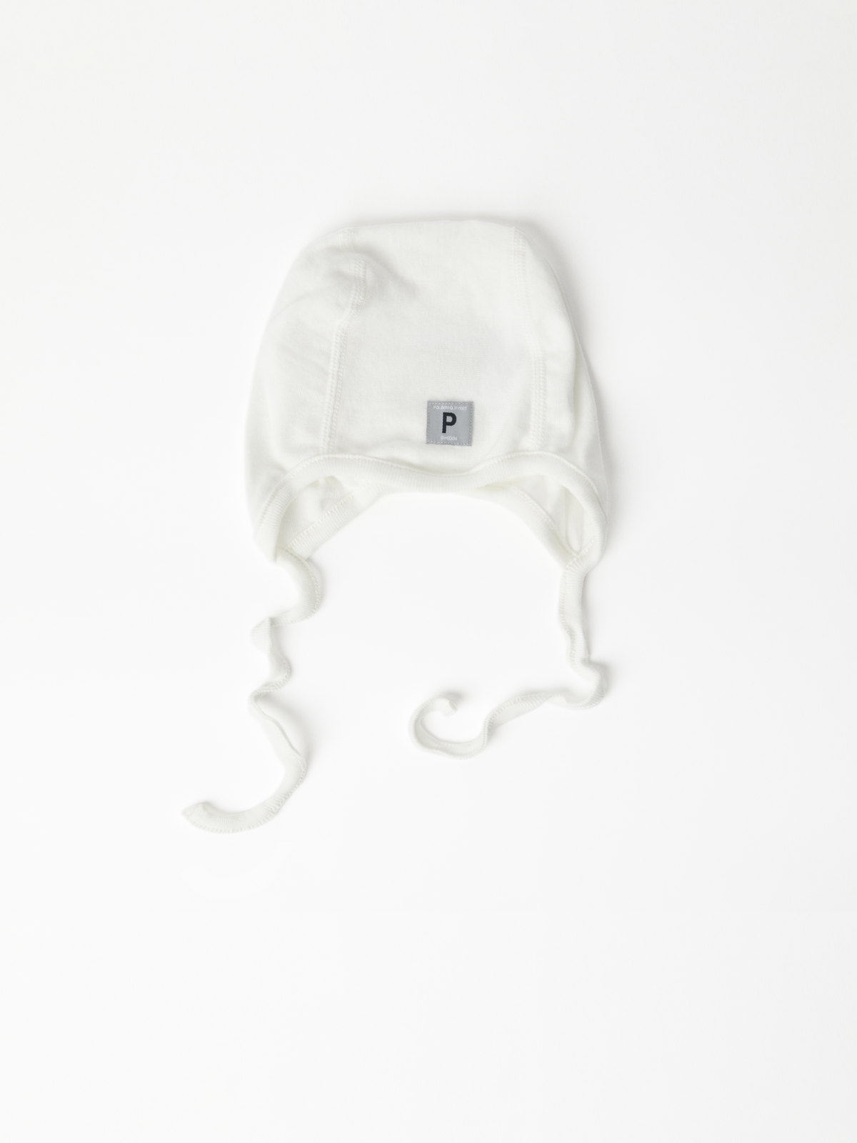 Solid color helmet hat in 100% organic cotton for newborn. The tie strings under the chin help to keep the hat in place.