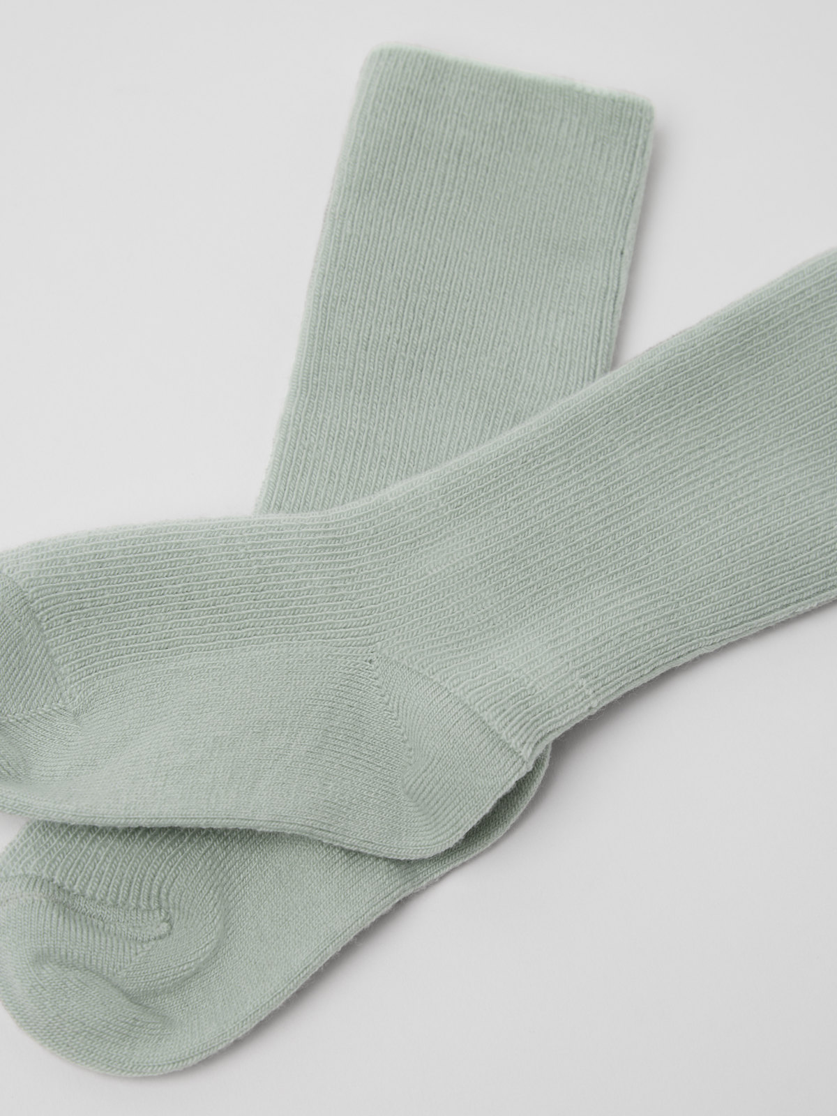 A pair of soft, solid colour socks in thin merino wool that keep little feet warm in the cold. The socks have cuffs that can be folded up or down, so they stay in place, even on the smallest feet.