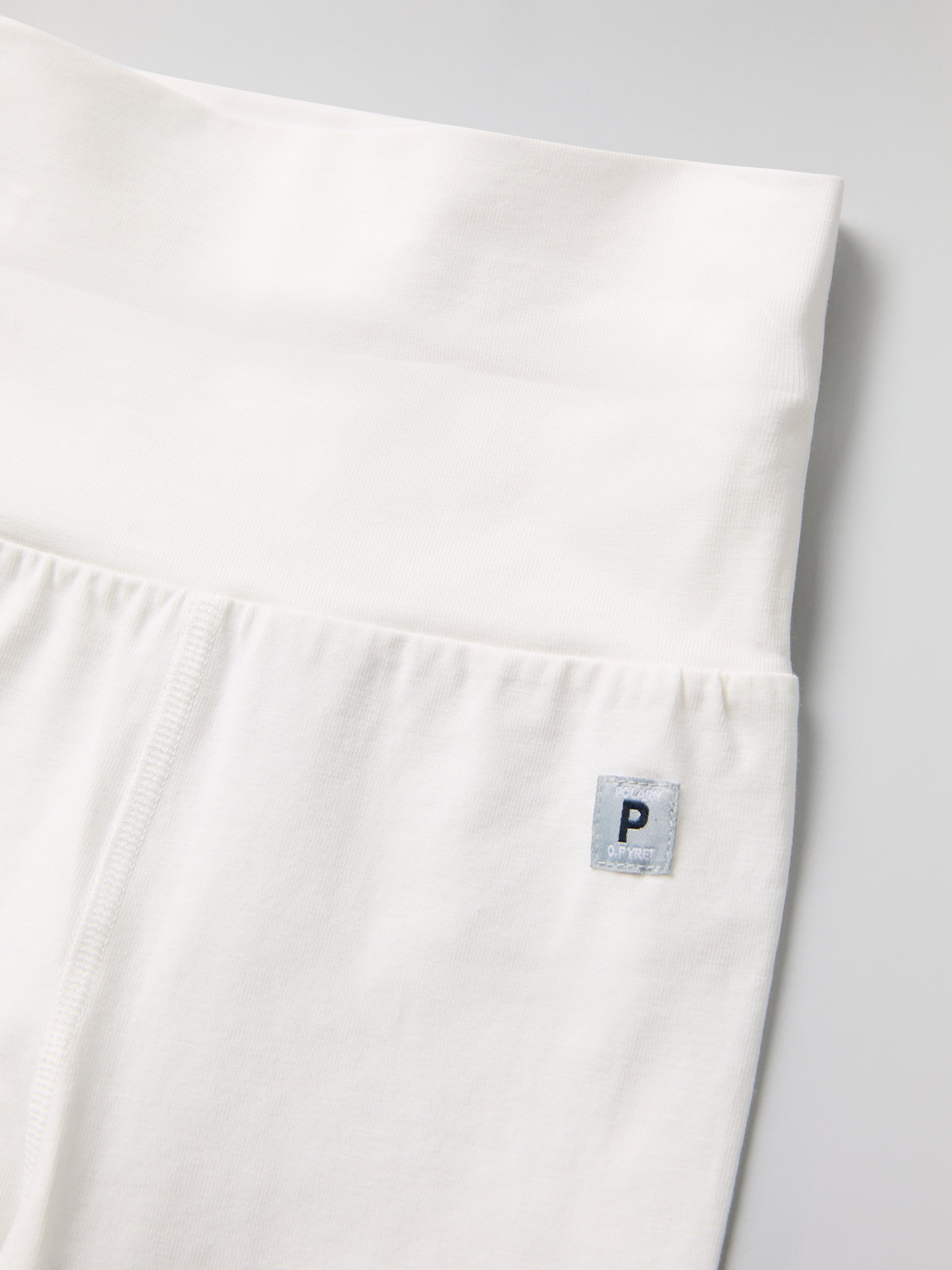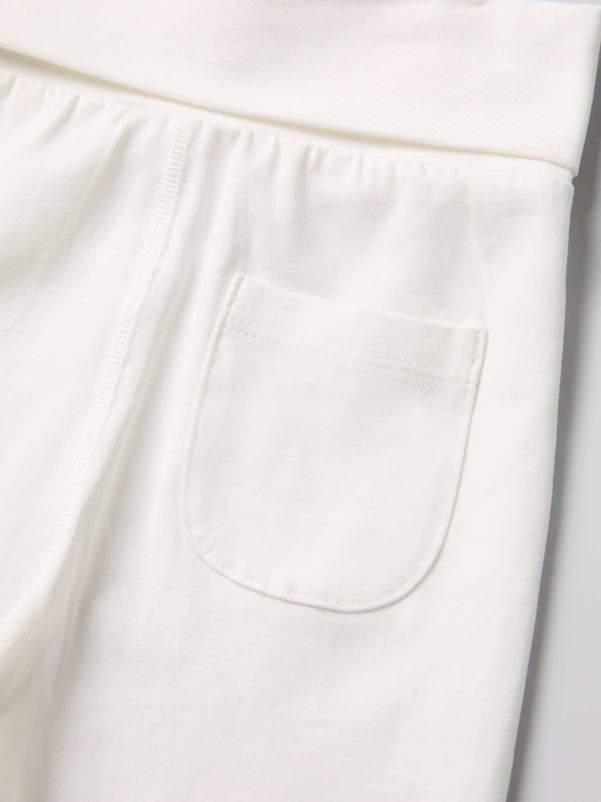 The solid color trousers are made in 100% organic cotton and have extra-soft seams that are gentle on delicate skin.