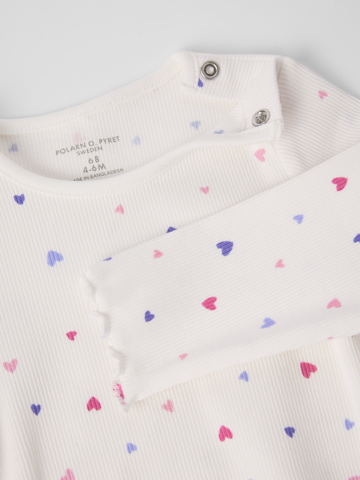 Ribbed babygrow in thin, organic cotton for your little one. It has extra-soft, flatlock seams that are gentle on sensitive skin and features a cute frilled edge at the sleeve cuffs. Snaps at the crotch and shoulder make dressing easy.