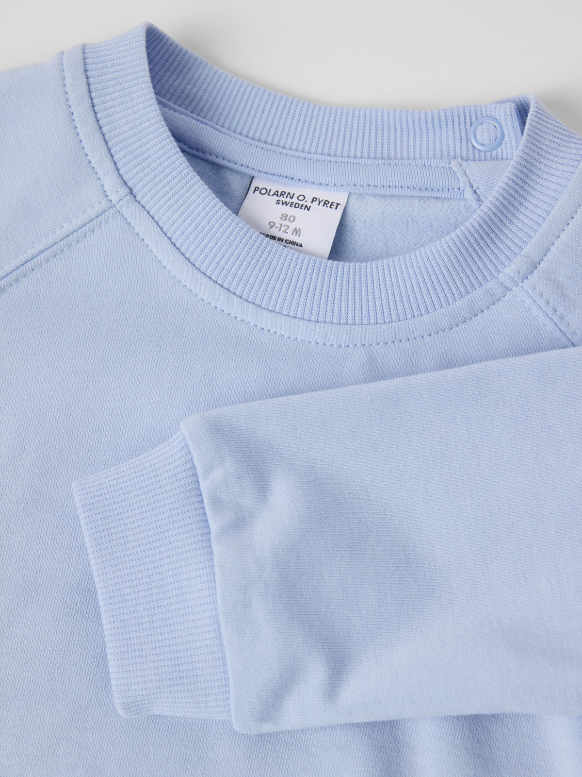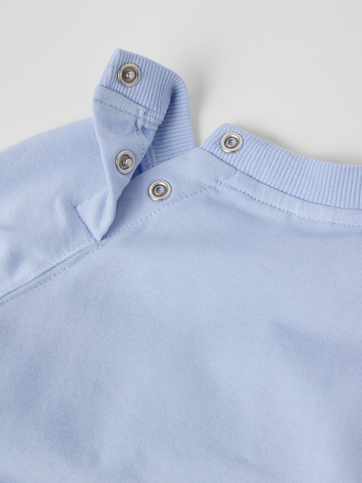 Jumper in 100% organic cotton with a soft sweatshirt quality for your little one. Perfect for any occasion! It has a ribbed neckline and cuffs with snaps on the shoulder to facilitate dressing.