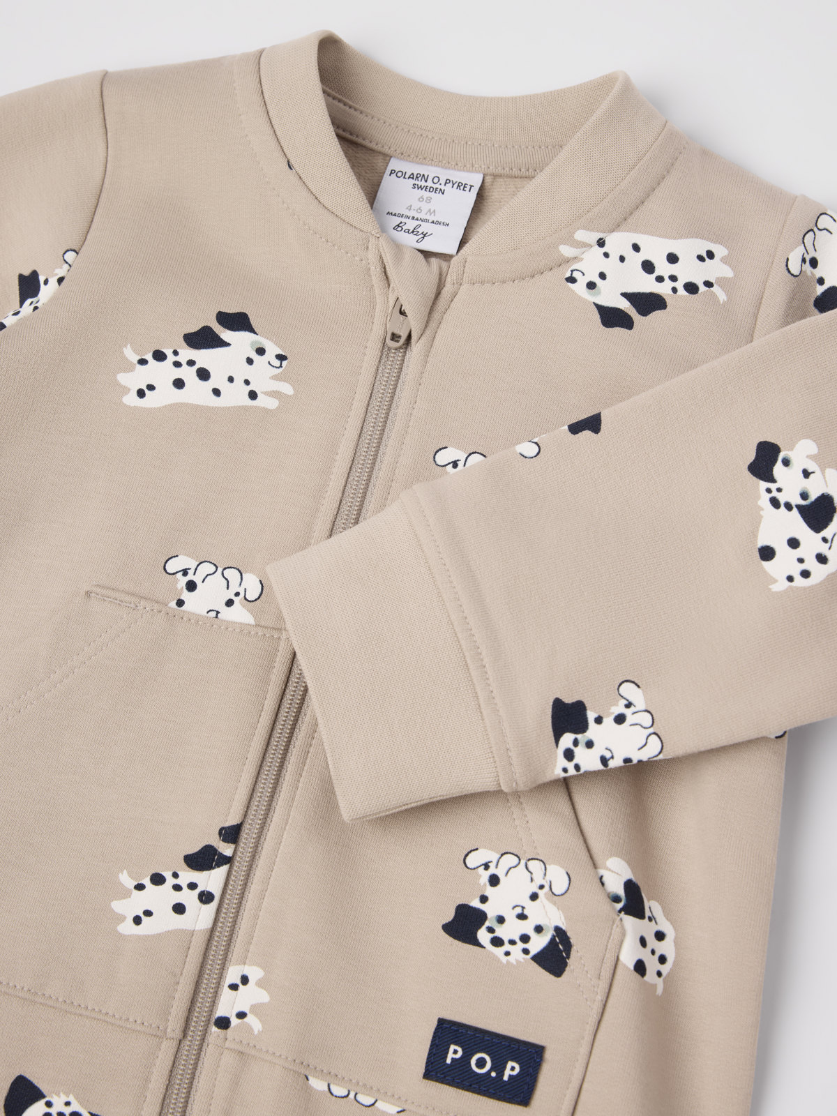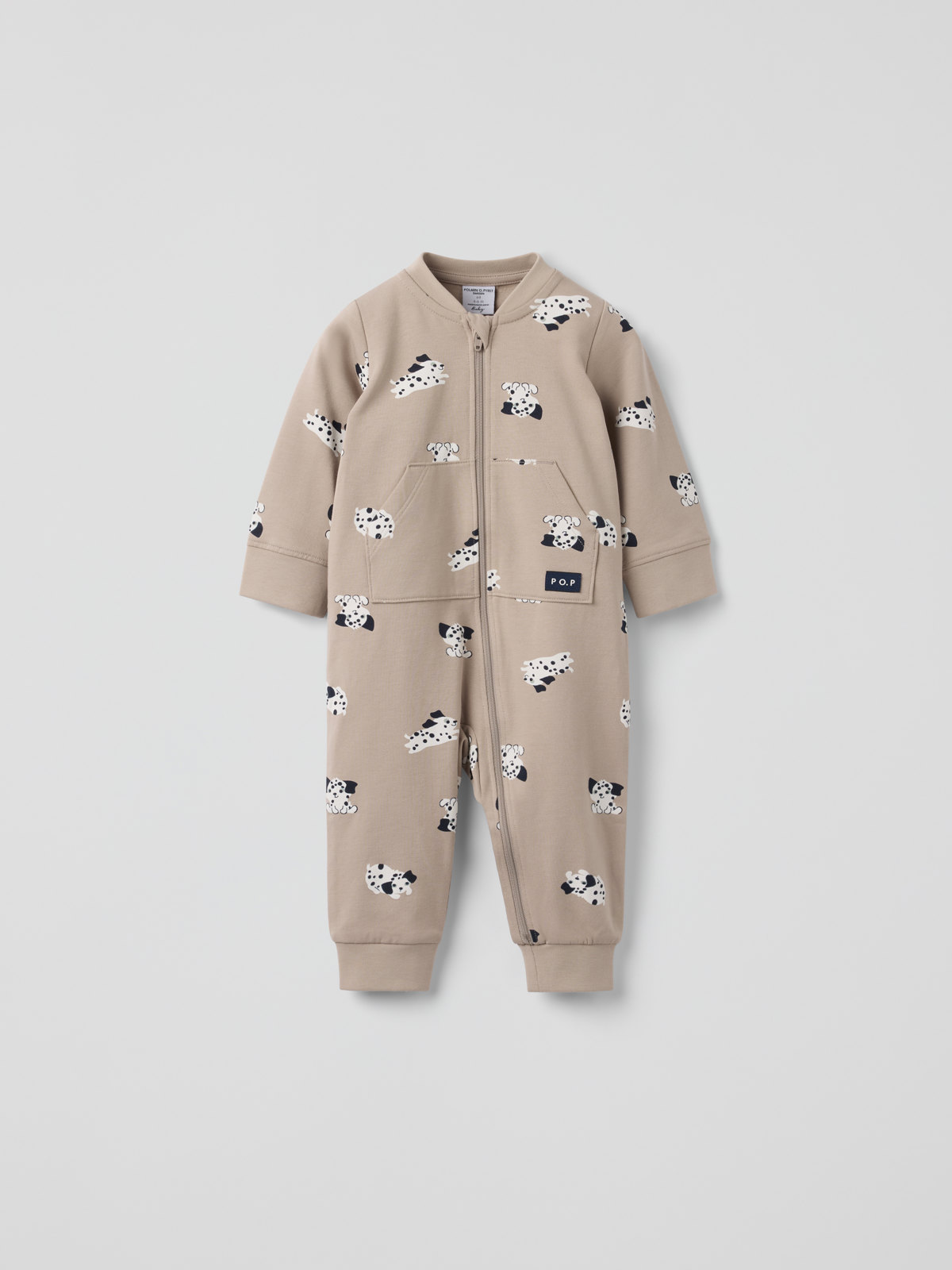 A cute all-in-one made in softest, organic cotton sweatshirt fabric for your little one, with a brushed lining. This all-in-one has soft, ribbed cuffs and ankles for a comfortable fit. The neck-to-ankle zipper facilitates dressing, while the chin guard is gentle on the chin and cheeks.