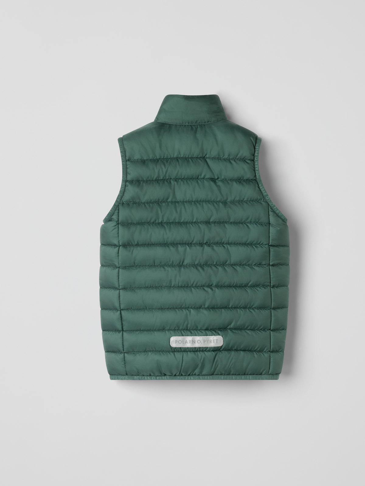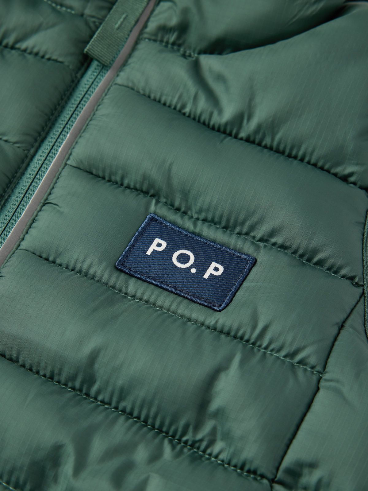 A lightly padded gilet in 100% recycled polyester. This gilet is windproof, water-repellent and warm, while being slick and flexible at the same time. Our unique snap-in system makes it easy to attach it to our STORMY and HAZY shell jackets.