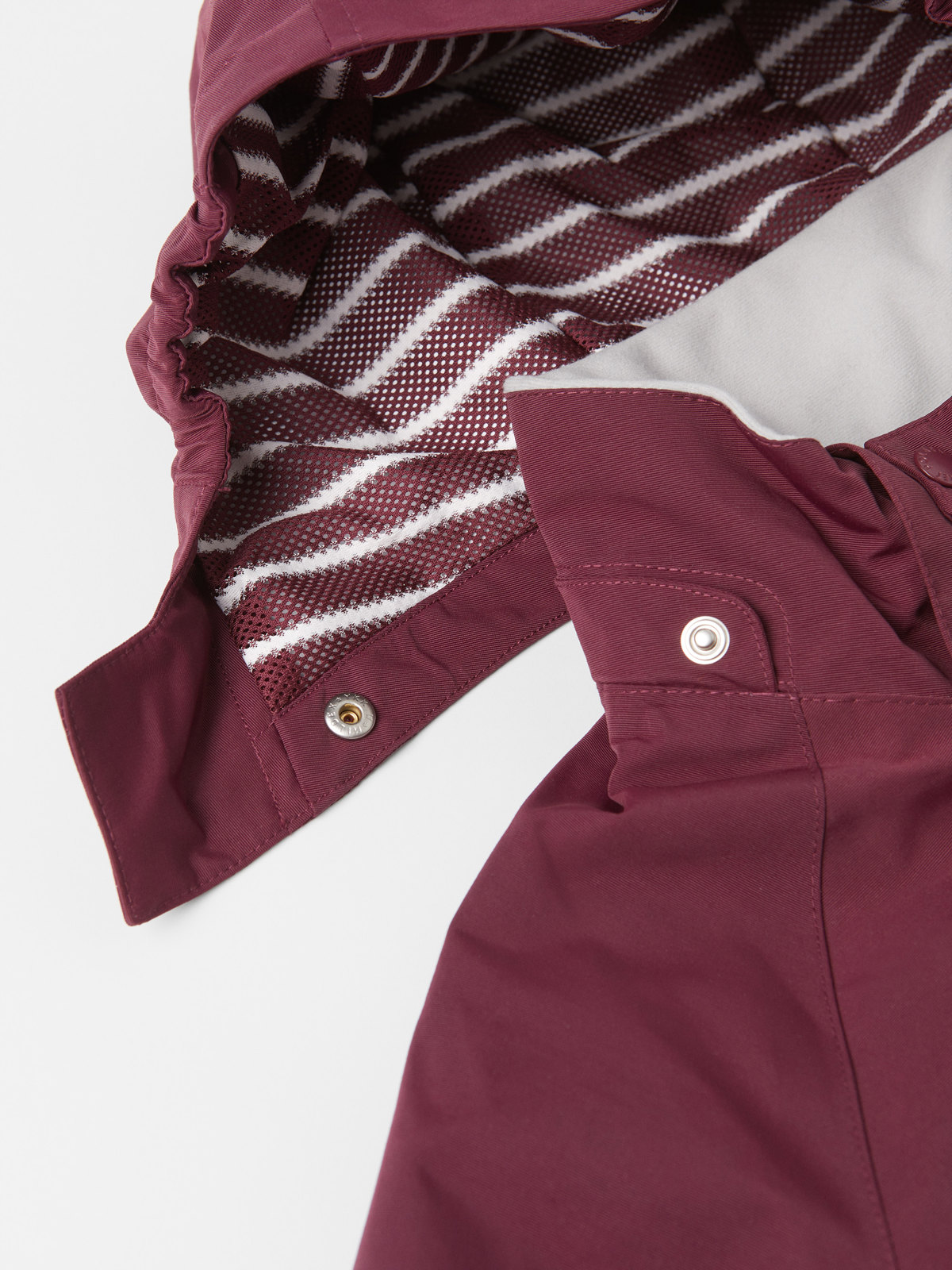 • The adjustable hood is detachable and fastened with snaps for increased safety; it also has elastic edging for the perfect fit.