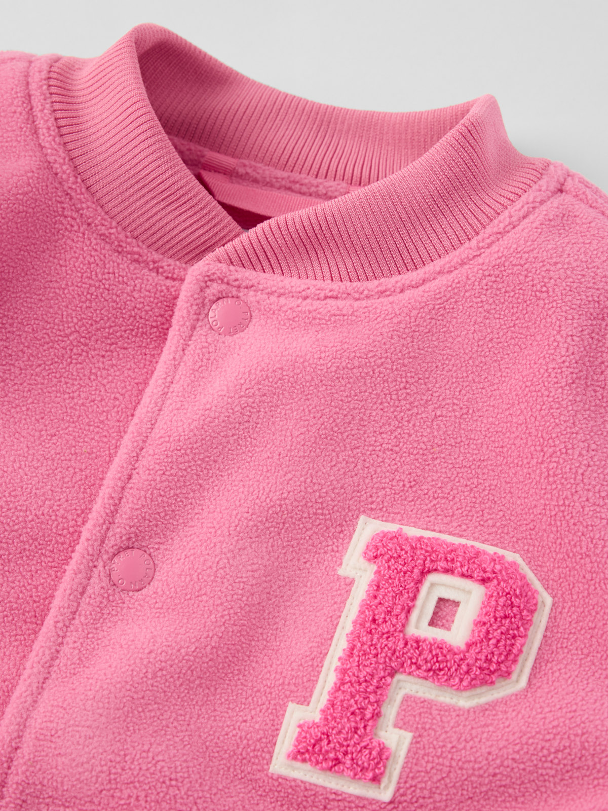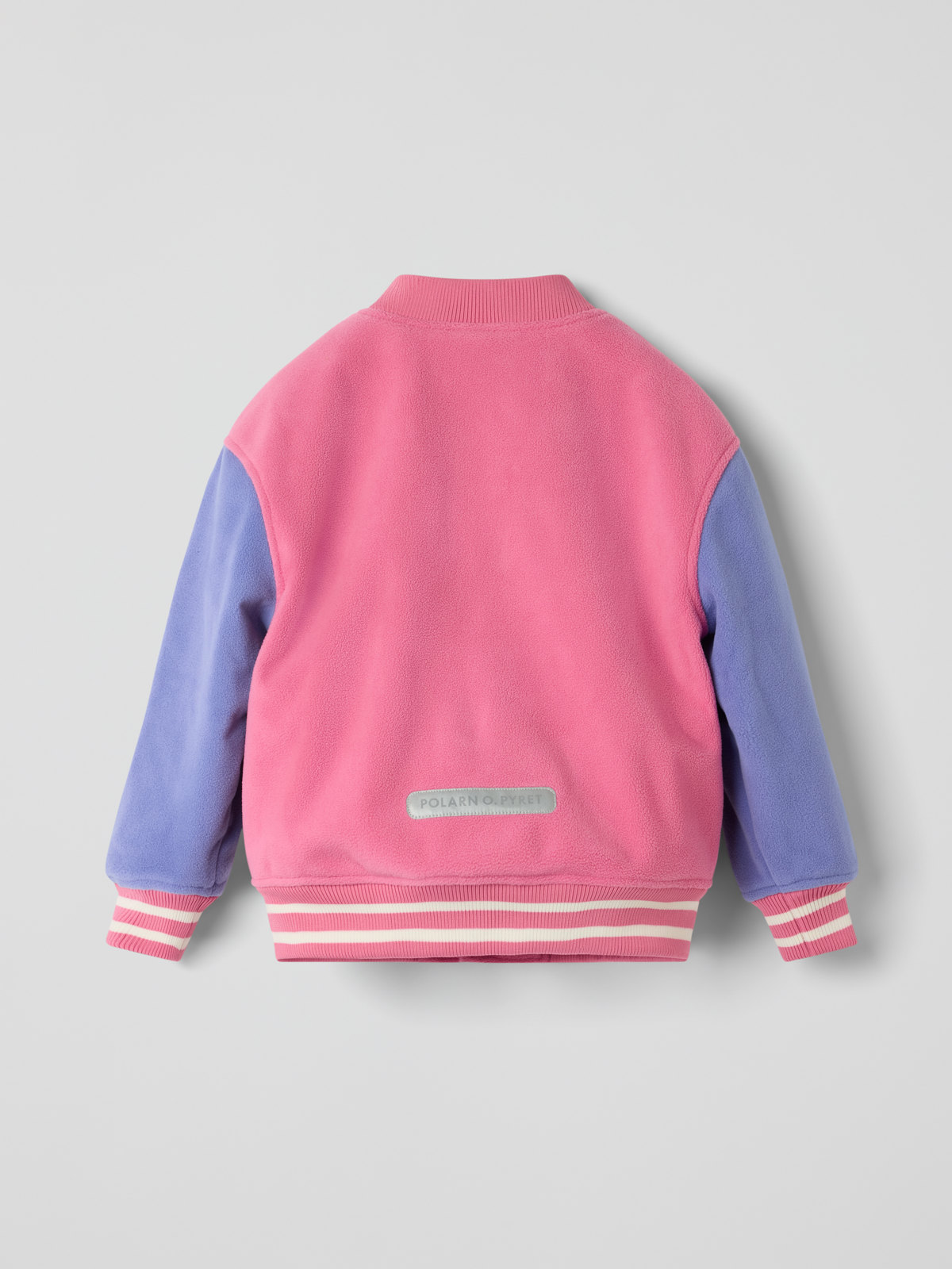 Varsity jacket made from the same soft, windproof material as our popular wind fleece, in 100% recycled polyester. A versatile jacket that keeps your child warm throughout spring and autumn. The jacket features ribbed cuffs and hem for a perfect fit and closes with front press buttons.