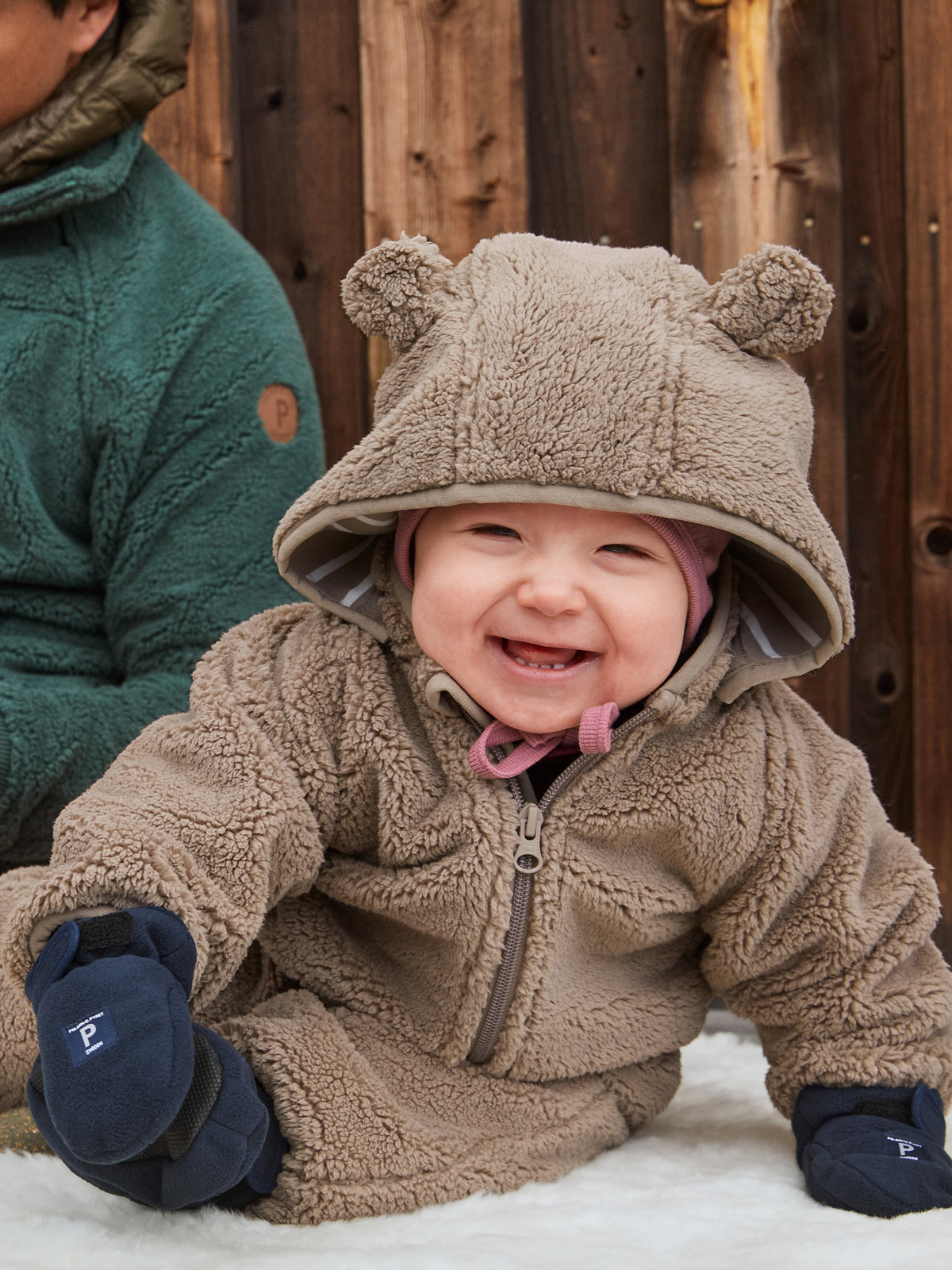 A windproof and water-repellent all-in-one in soft pile fabric for baby – a cozy favorite for the stroller!